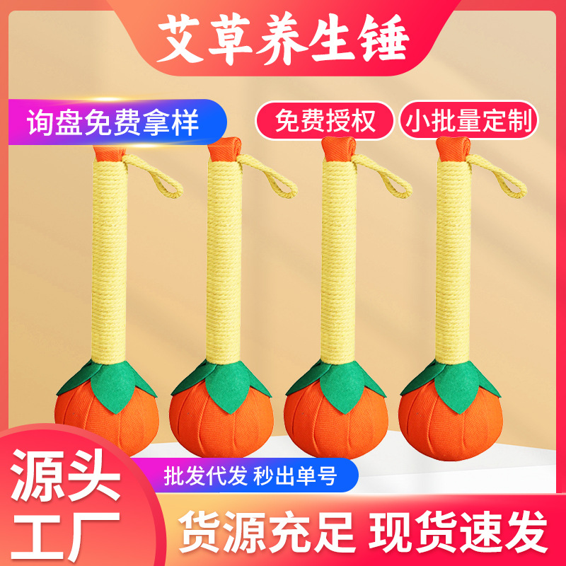 手持经络敲打艾草锤 国庆中秋节事事如意养生锤手工diy艾灸按摩锤