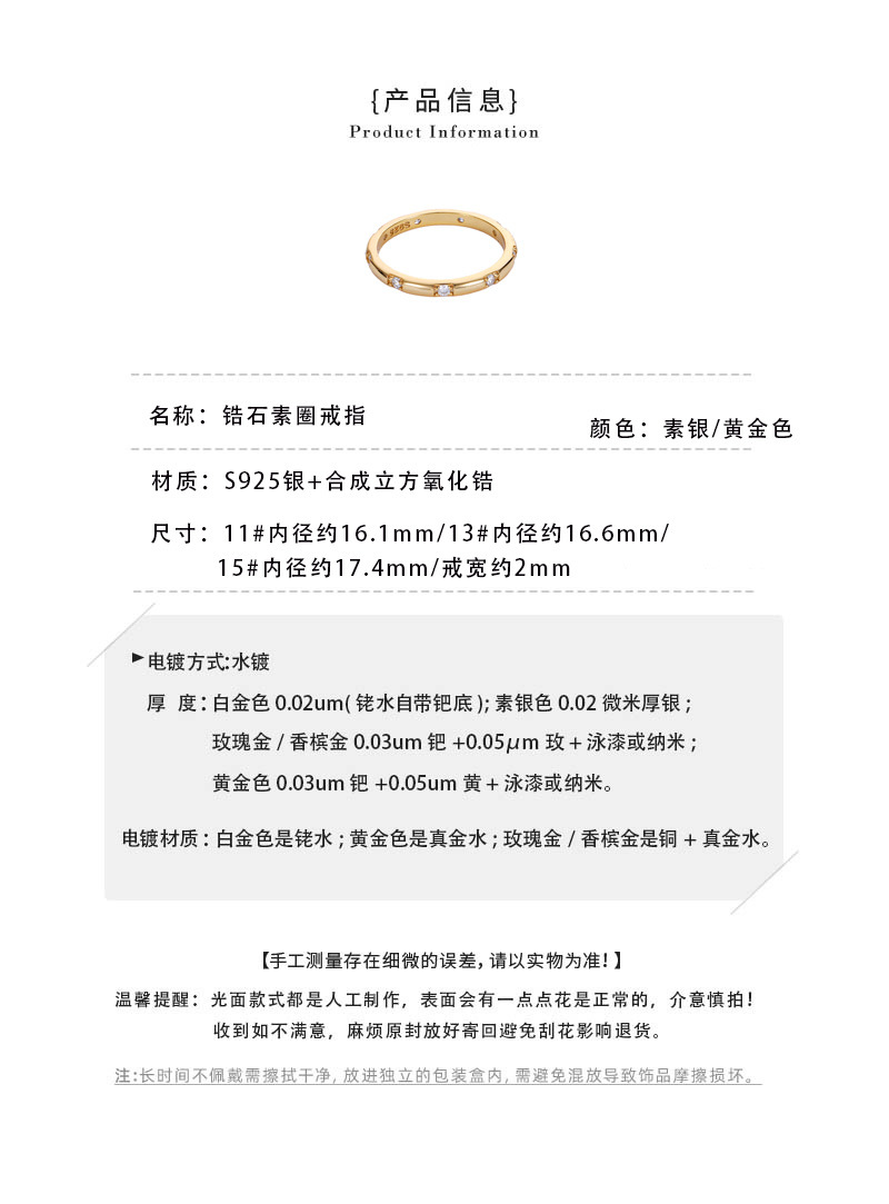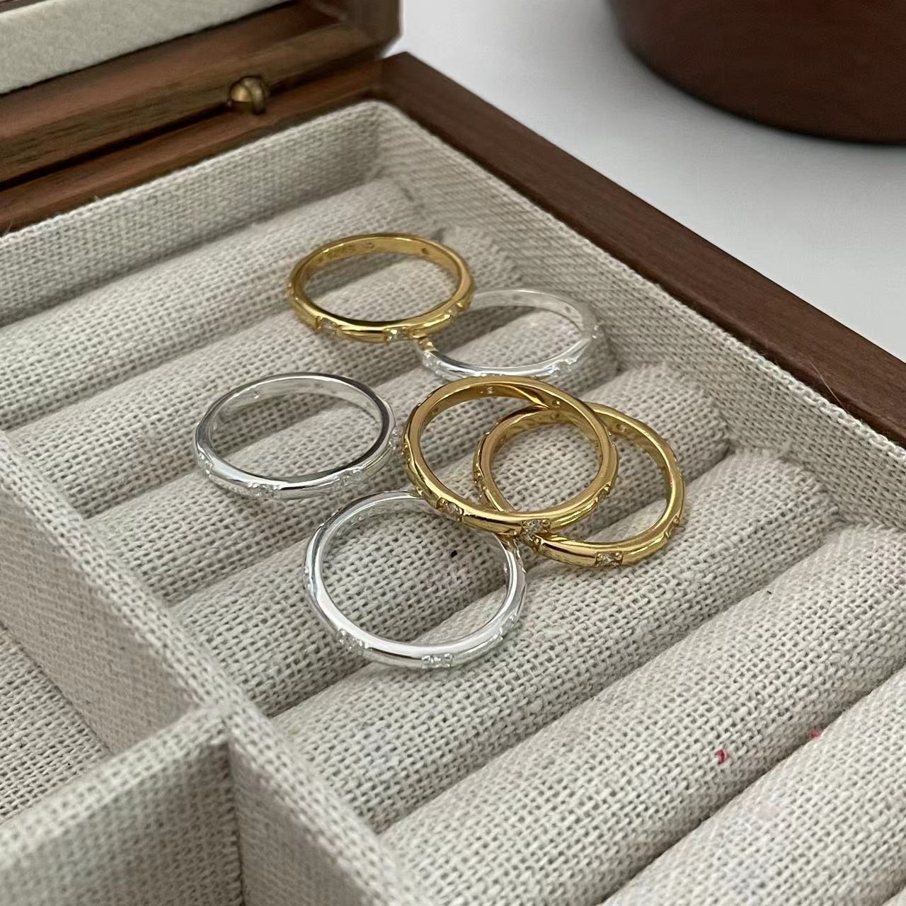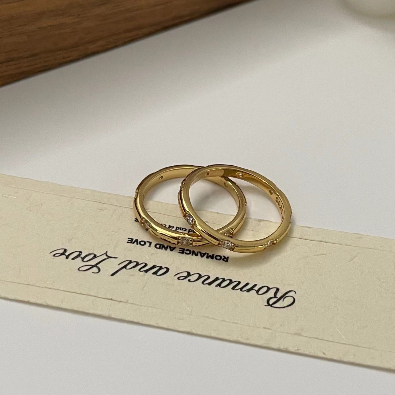 S925纯银韩版小众设计感复古锆石戒指简约素圈指环小红书热卖款