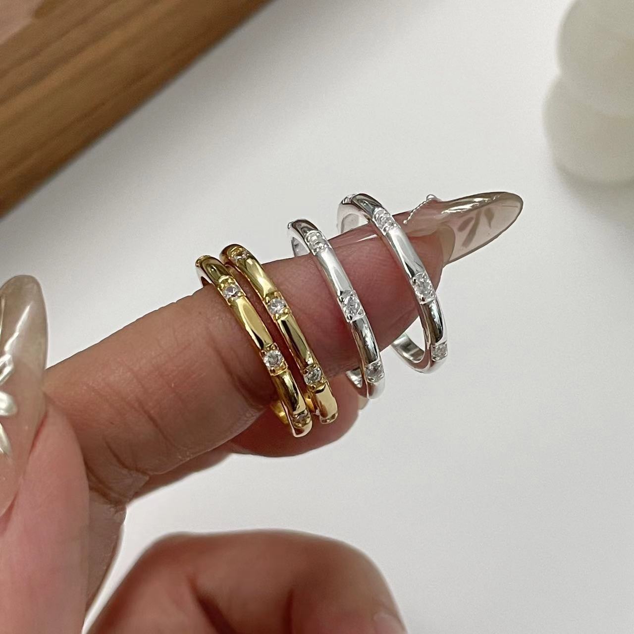 サイナ925銀韓国版ドリルキラキラジルコニウム指輪シンプルなファッション畳イン風閉口リング銀飾り卸売り