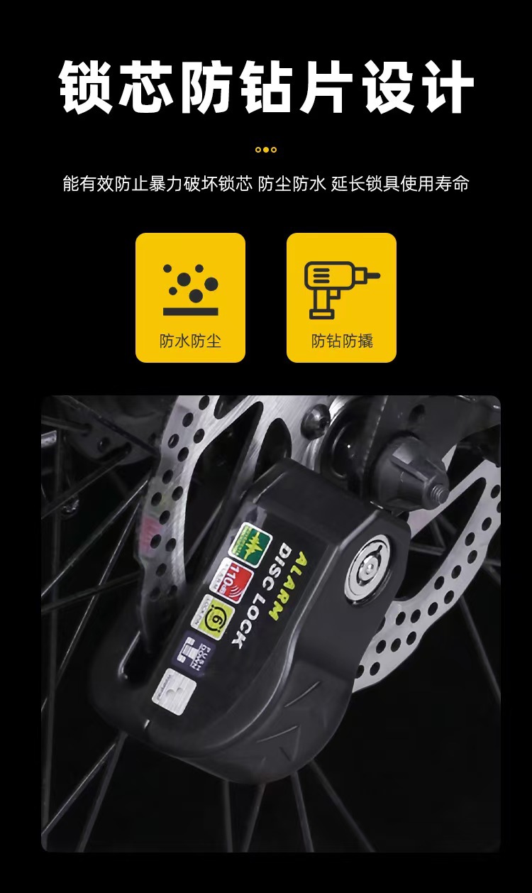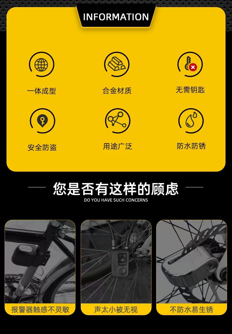 自行车碟刹锁报警器电动车锁摩托车刹车盘防盗锁山地车警报碟刹锁