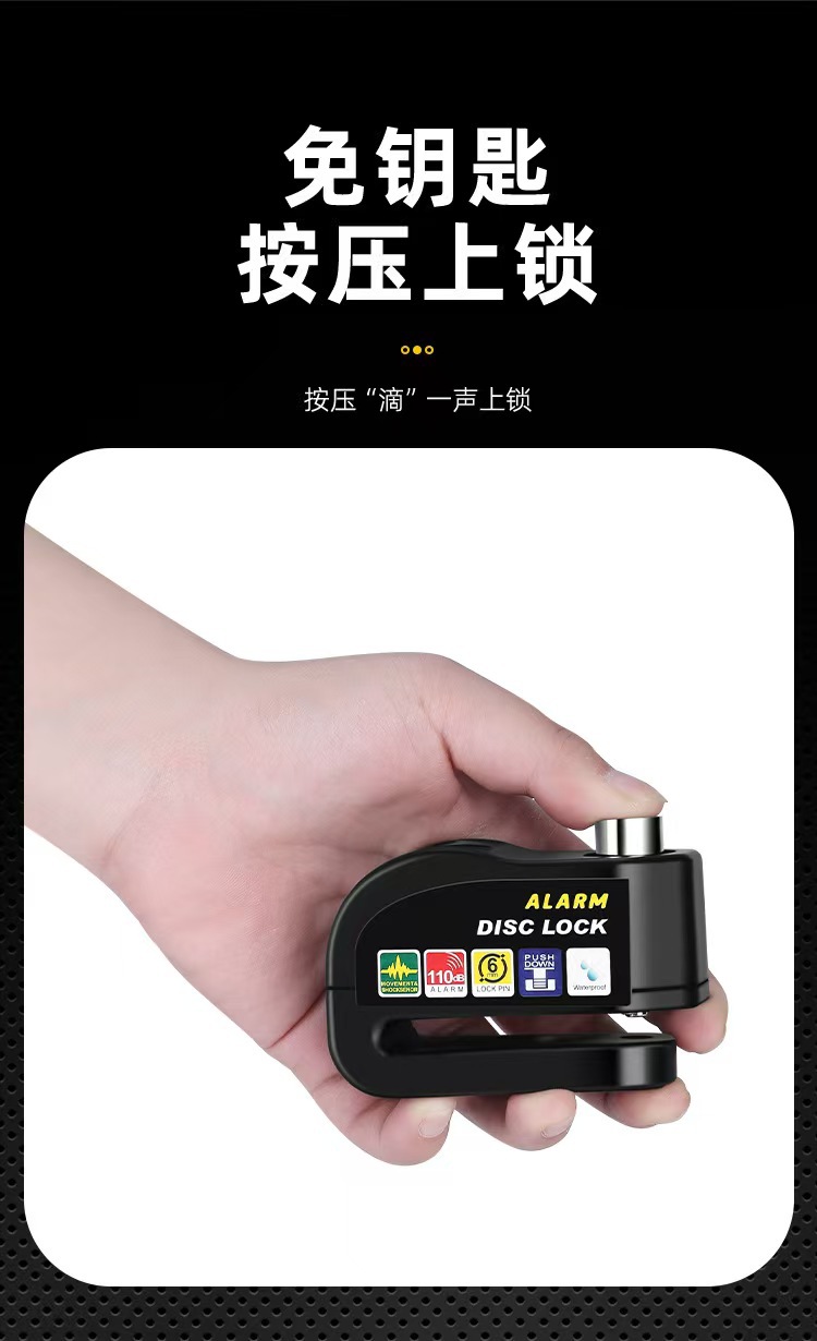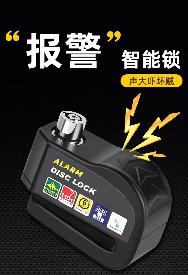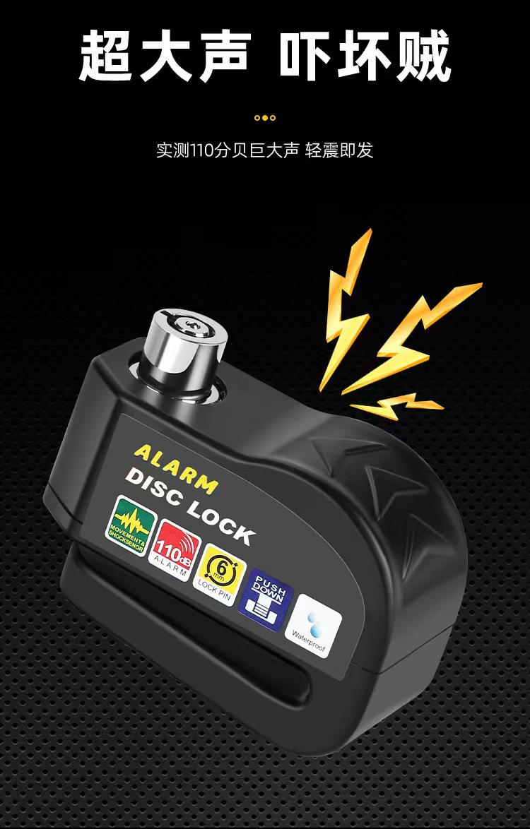 自行车报警锁110分贝小电驴电动车摩托车防盗锁可充电刹车盘碟锁
