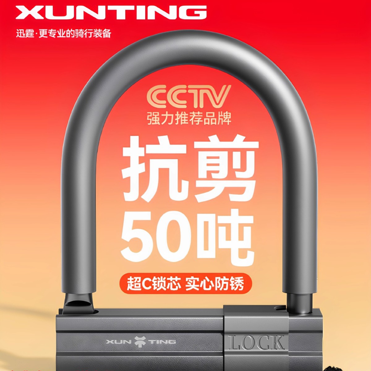 自行车锁电动车锁u型锁摩托车防盗锁电瓶车锁单车U型锁骑行装备