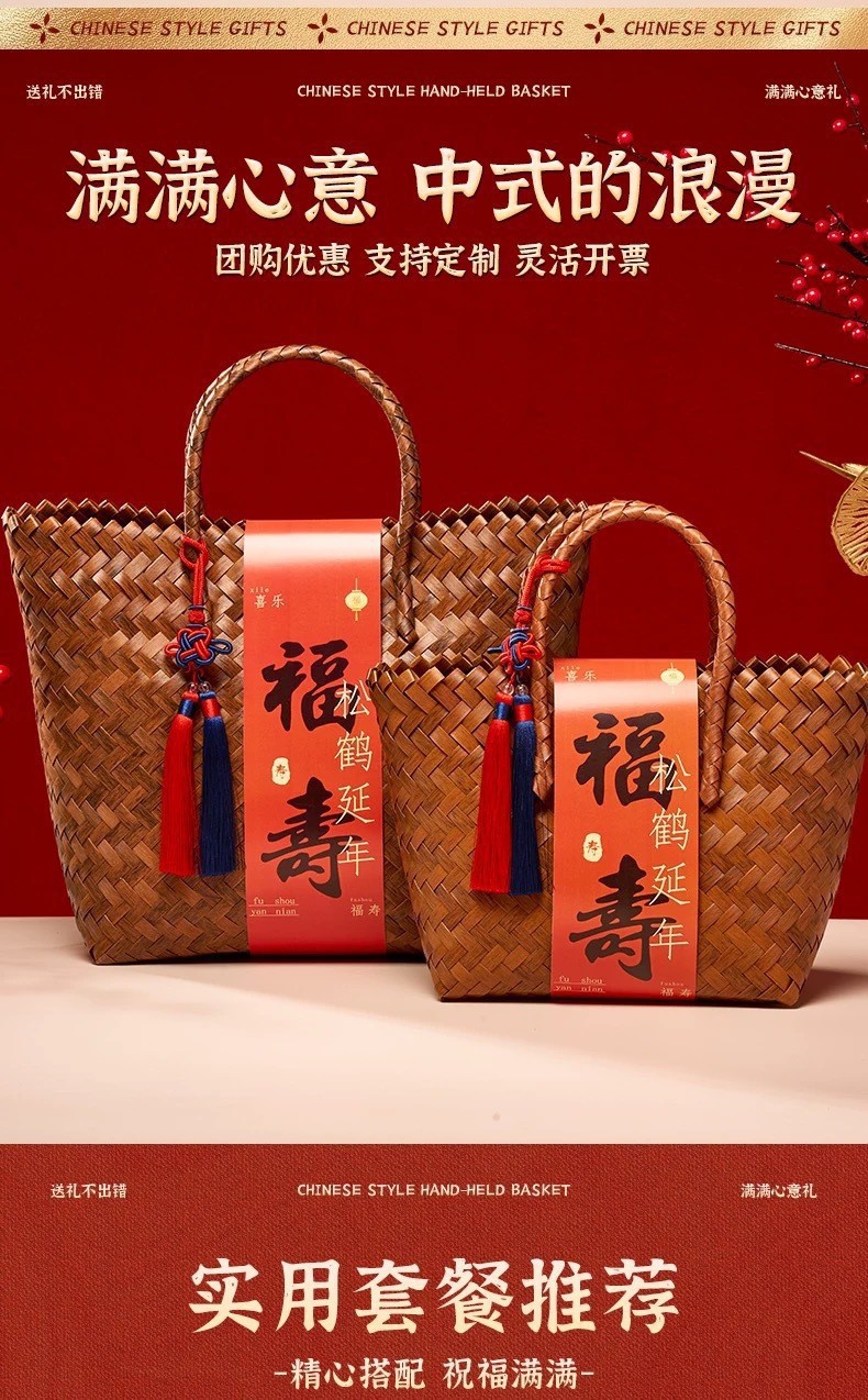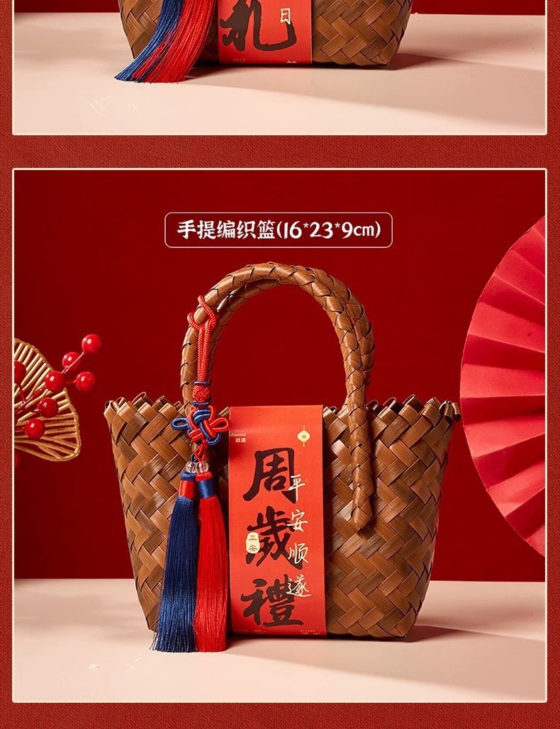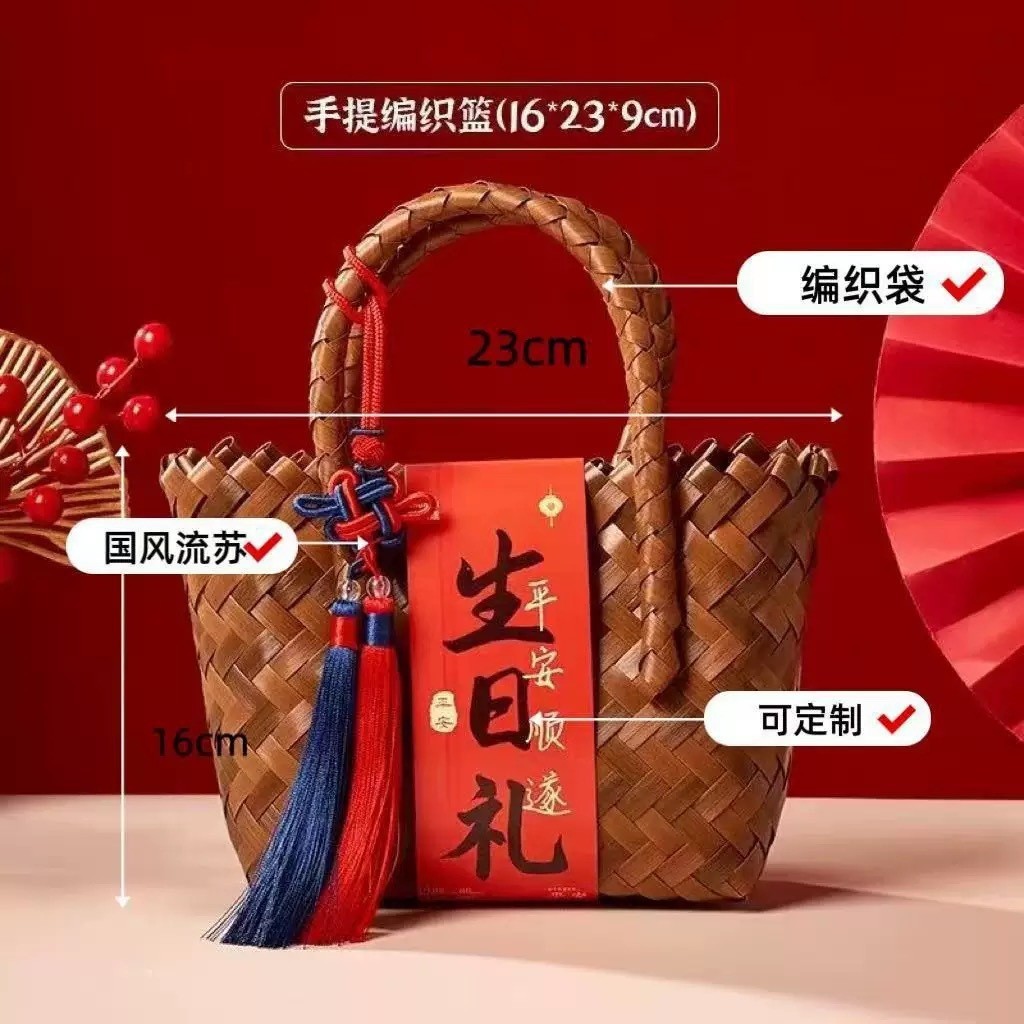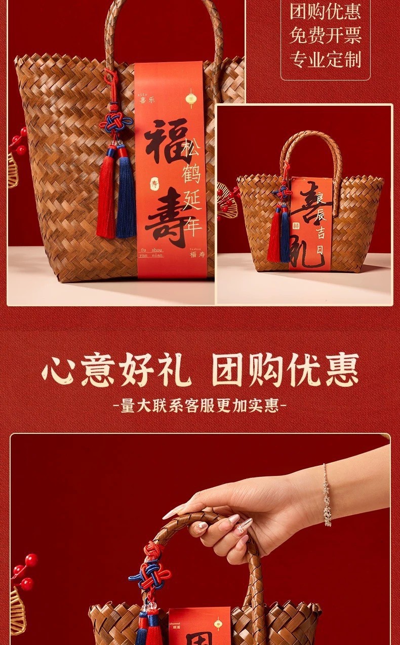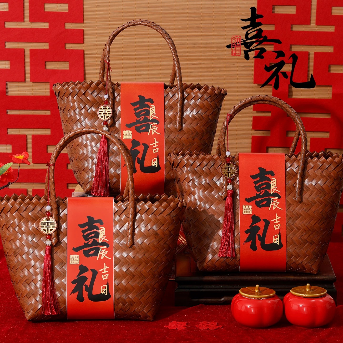 新中式乔迁手工编织篮子年会周岁寿伴手礼结婚喜铺礼品藤编手提包