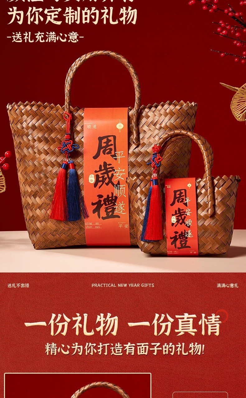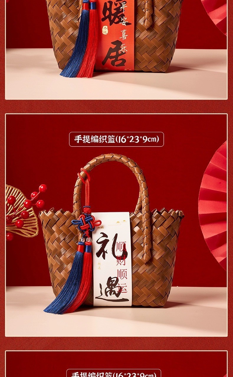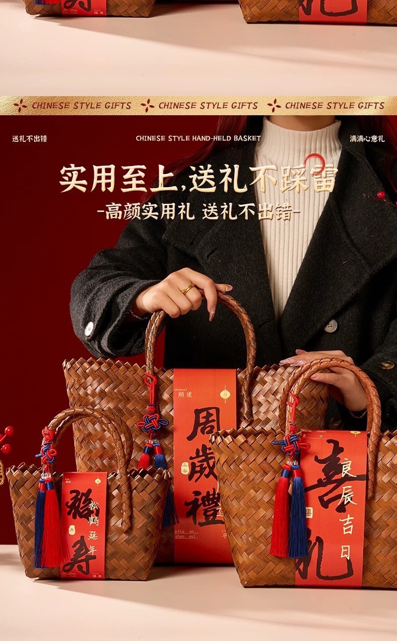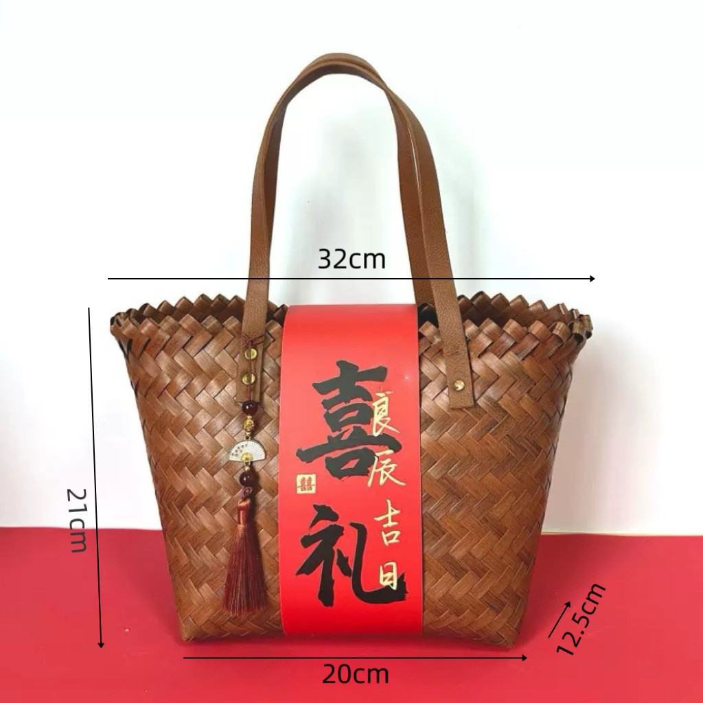 新中式乔迁手工编织篮子年会周岁寿伴手礼结婚喜铺礼品藤编手提包