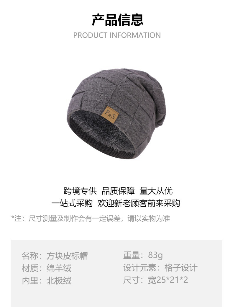 TEMU爆款男士冬季跨境毛线帽子欧美时尚堆堆帽雪天加绒护耳针织帽