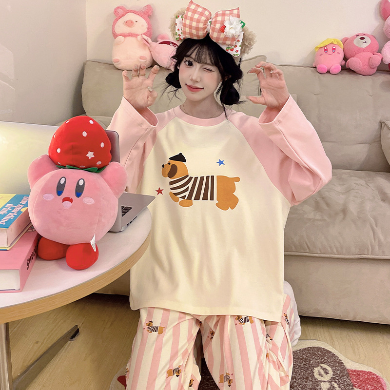 2024新型パジャマ男性春秋綿質長袖アニメゆるい青少年は家庭服セットを着ることができる