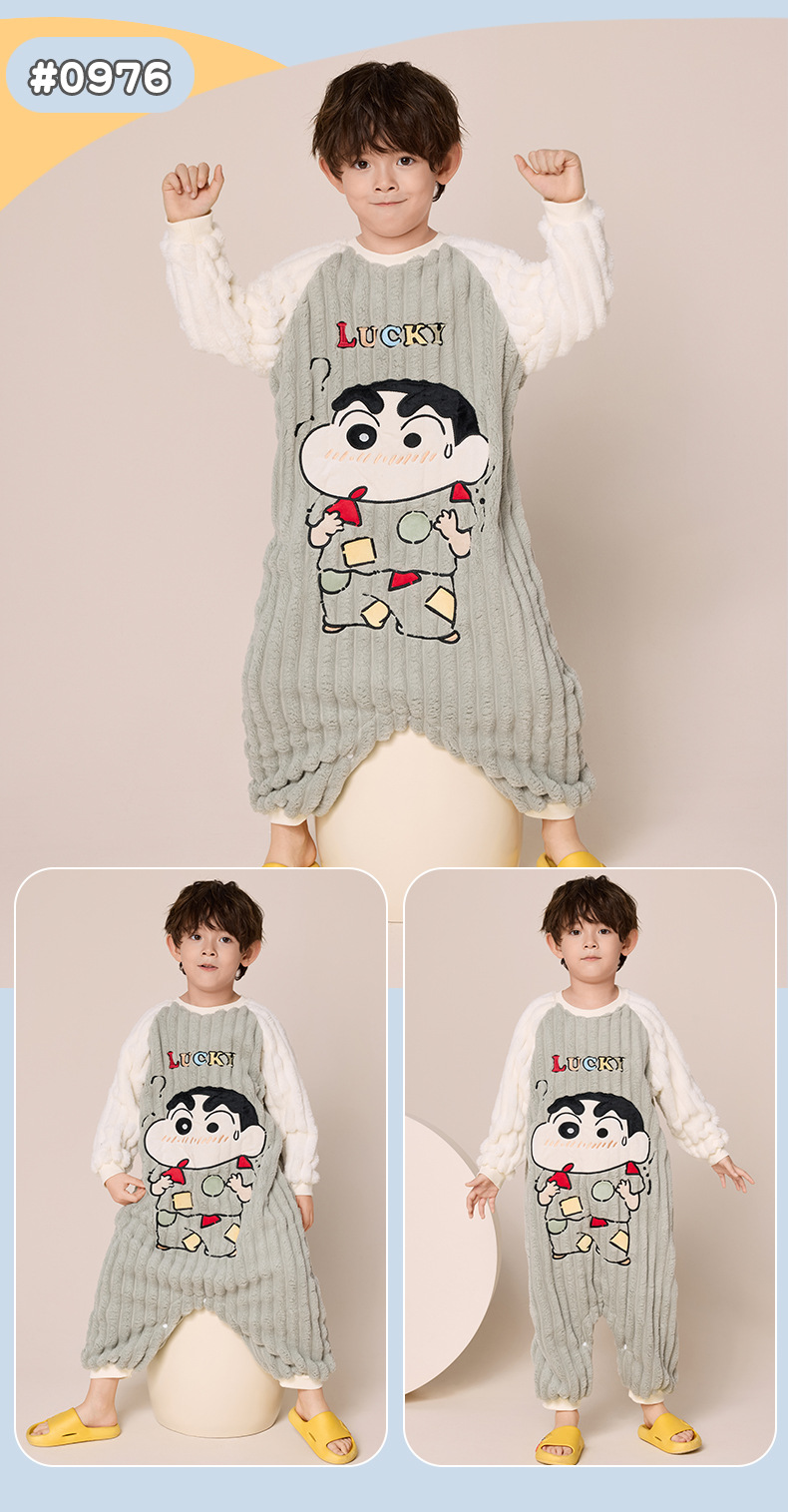 男の子用寝袋、コーラルベルベット、冬用厚手、赤ちゃん用キック防止ブランケット、秋冬用フランネル、子供用ワンピースパジャマ、冬用