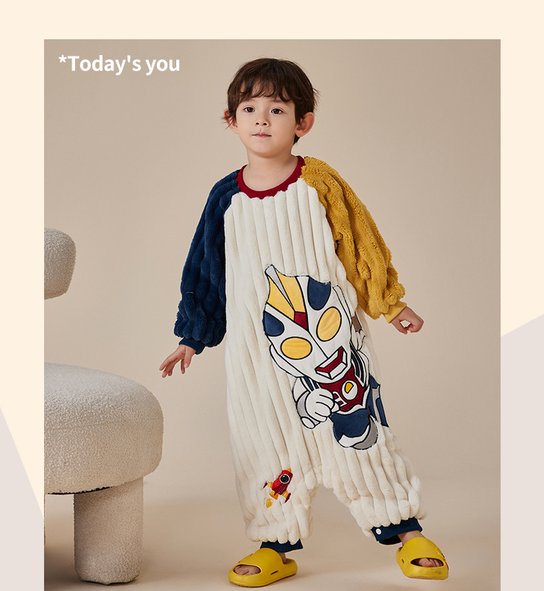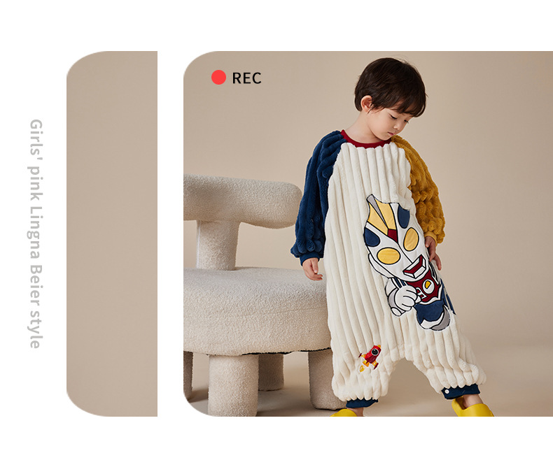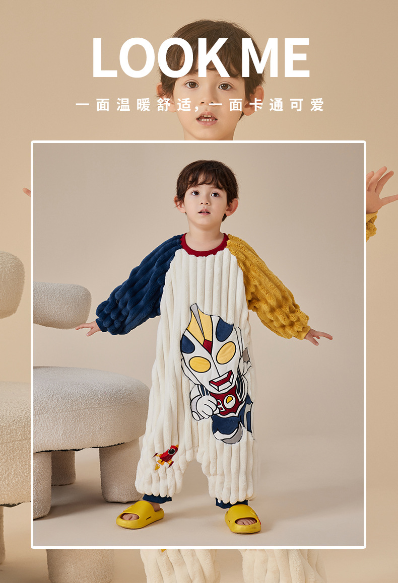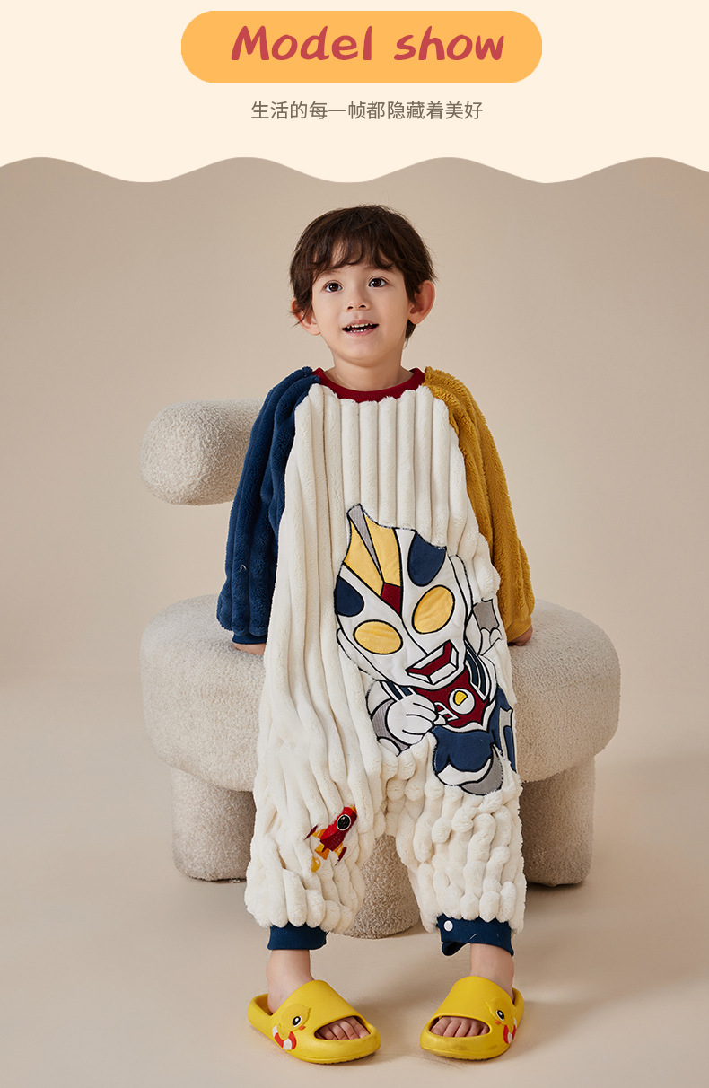 赤ちゃんの連体パジャマ秋冬の男女のフランネルとベルベットの厚いサンゴのぬいぐるみのウルトラマン寝袋