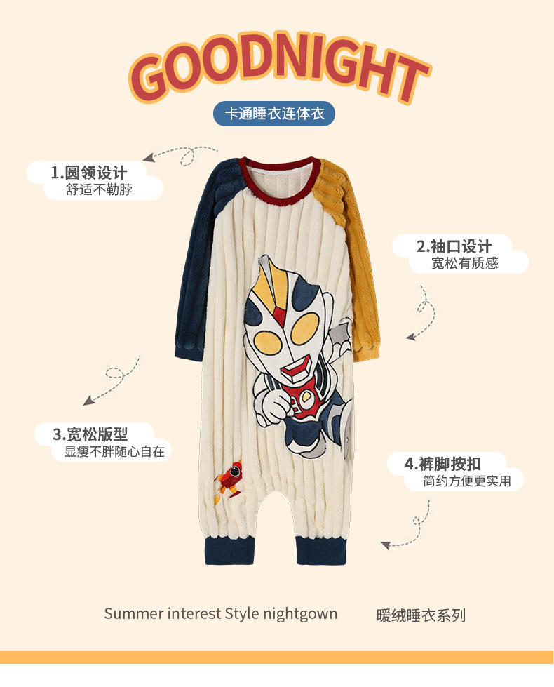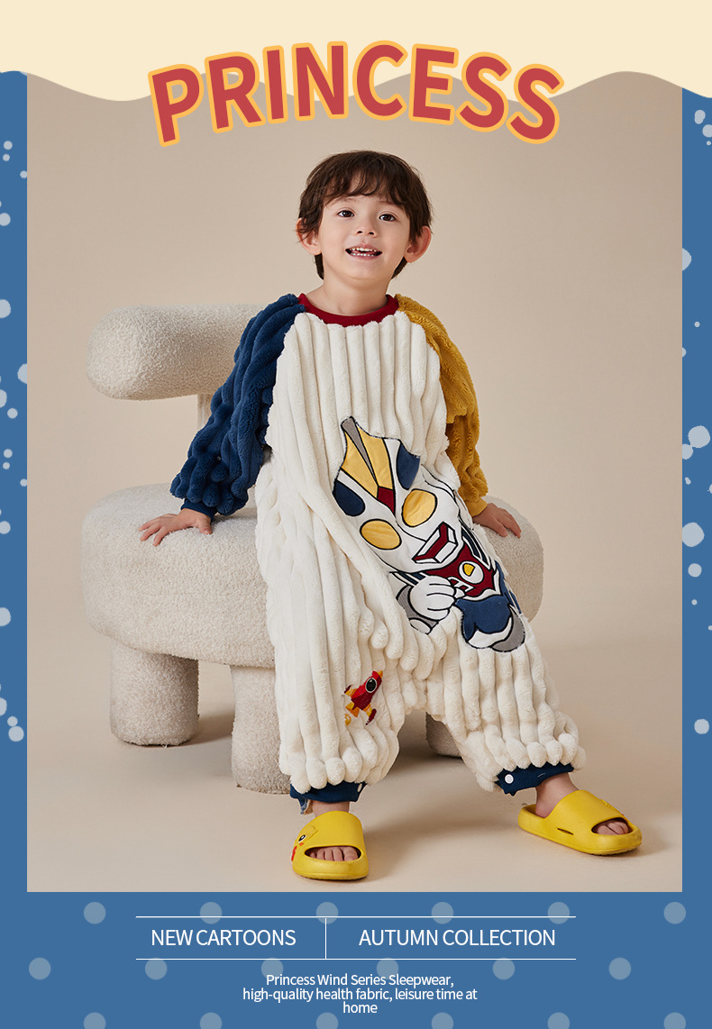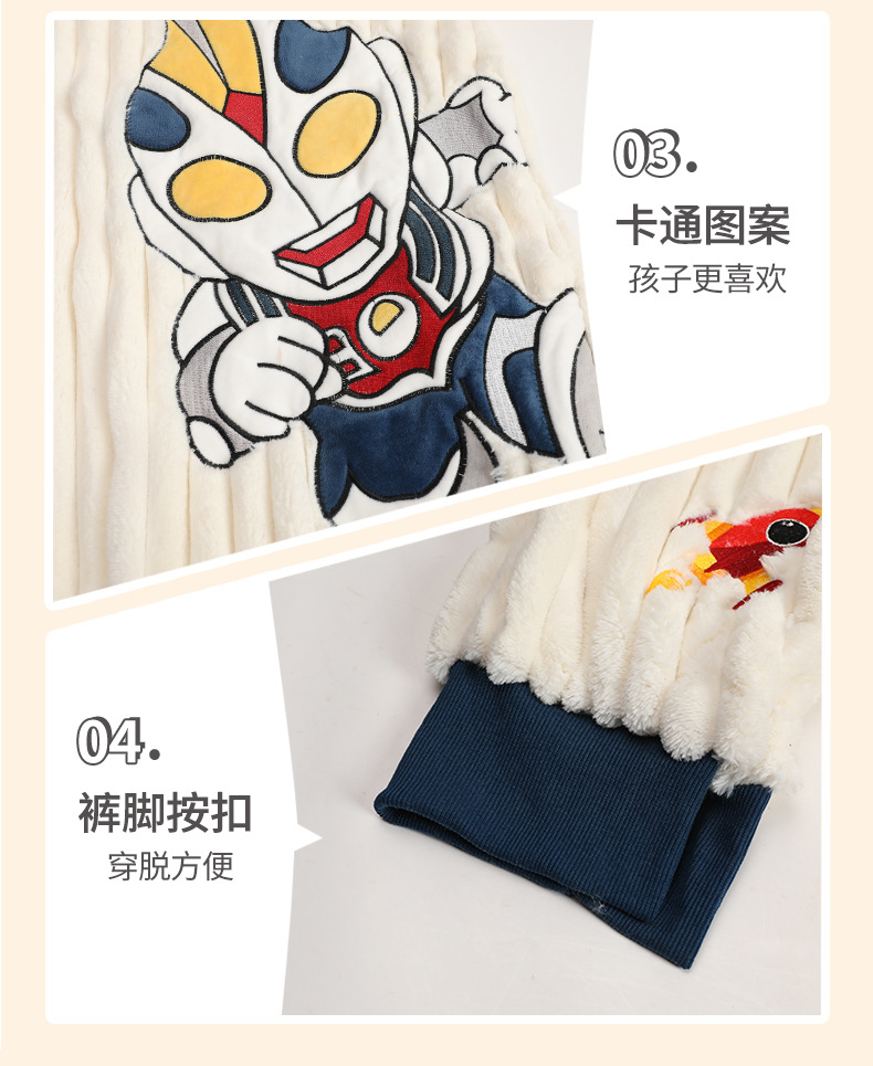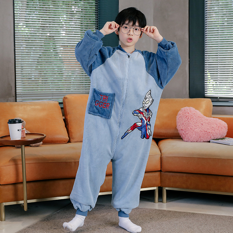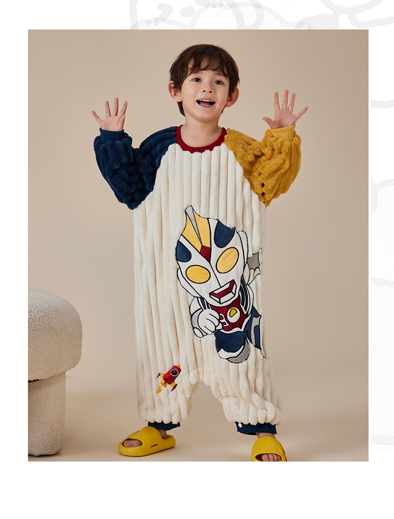 赤ちゃんの連体パジャマ秋冬の男女のフランネルとベルベットの厚いサンゴのぬいぐるみのウルトラマン寝袋