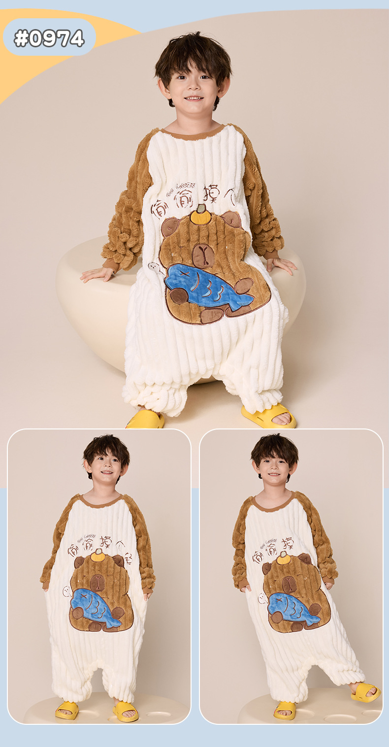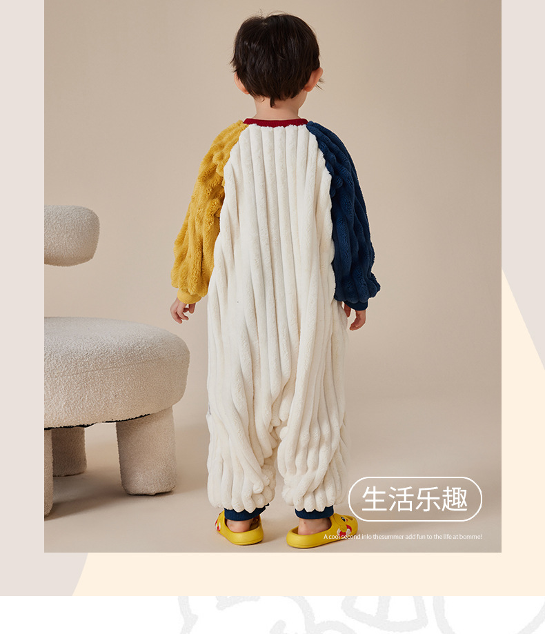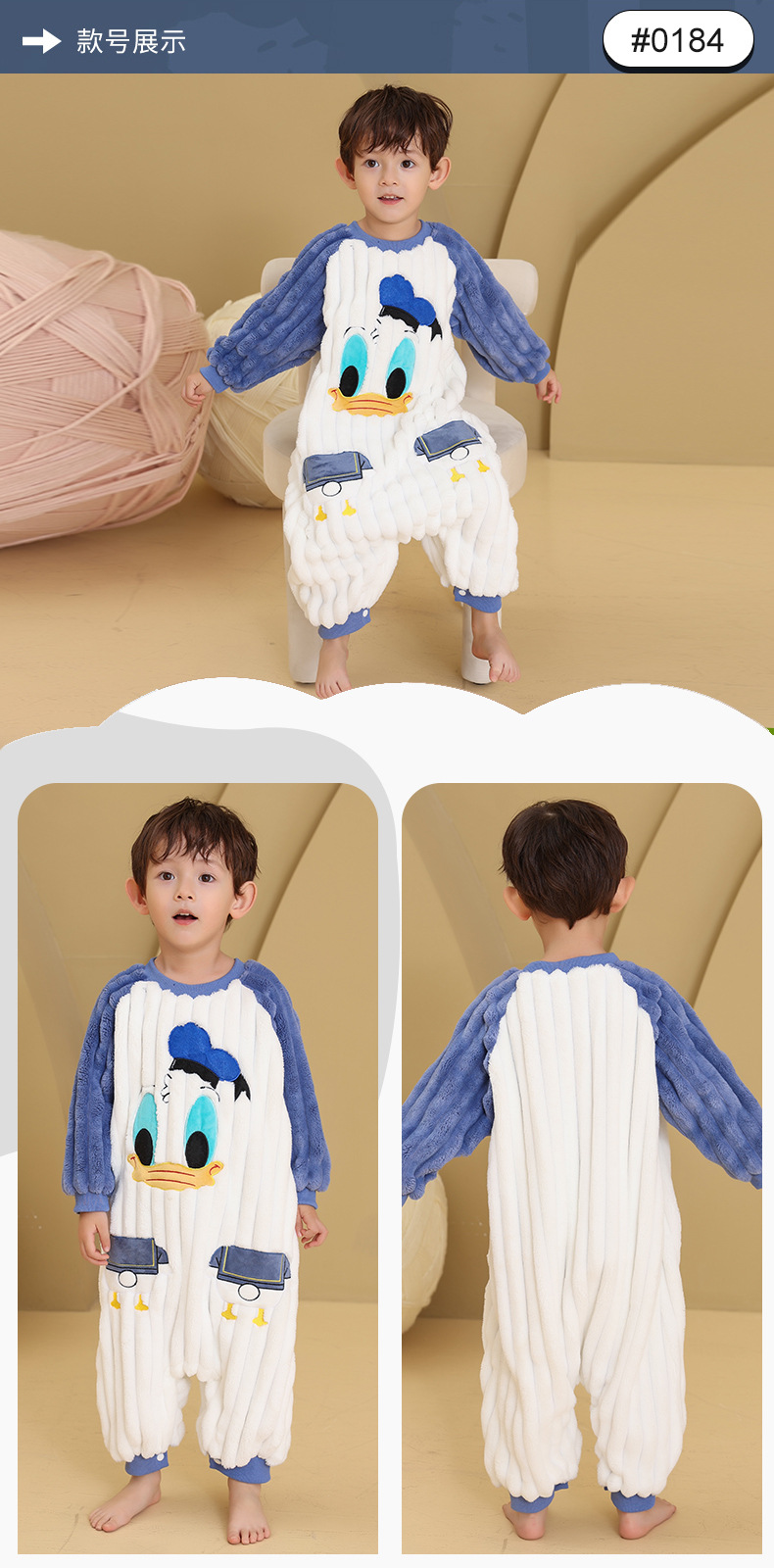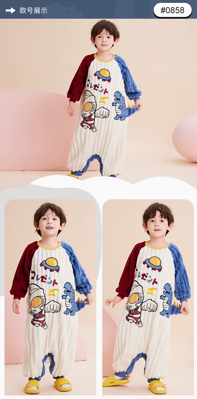 秋冬儿童法兰绒分腿睡袋加绒加厚男童珊瑚绒睡衣连体衣保暖家居服