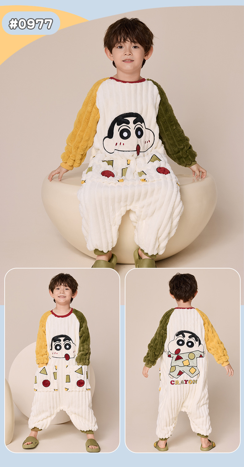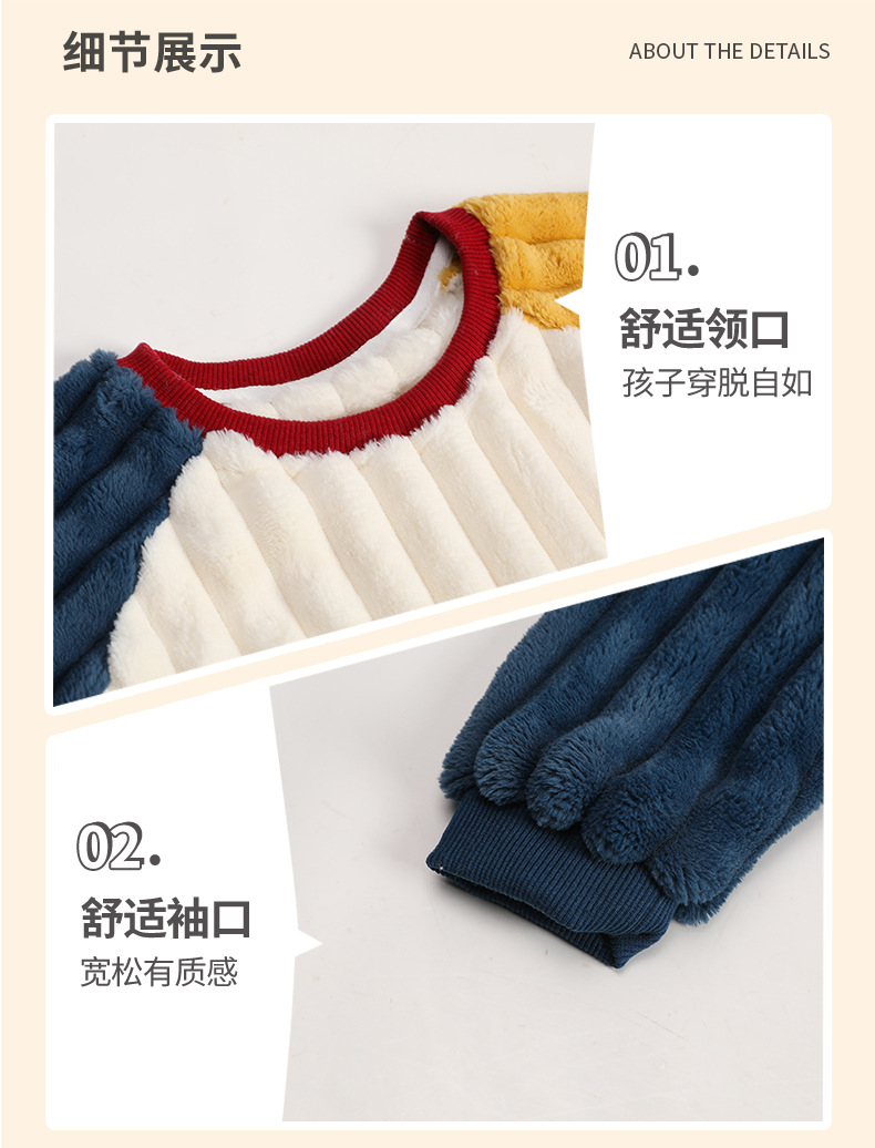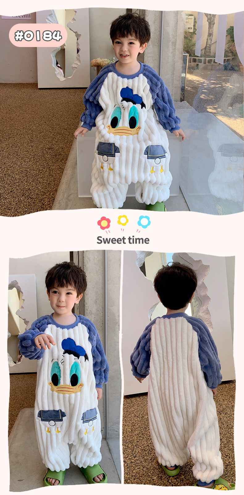 秋冬儿童法兰绒分腿睡袋加绒加厚男童珊瑚绒睡衣连体衣保暖家居服