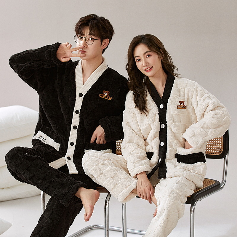 カップルパジャマ長袖コーラルダウン秋冬モデル女性かわいい漫画男性フランネル大きいサイズゆるいホームウェア