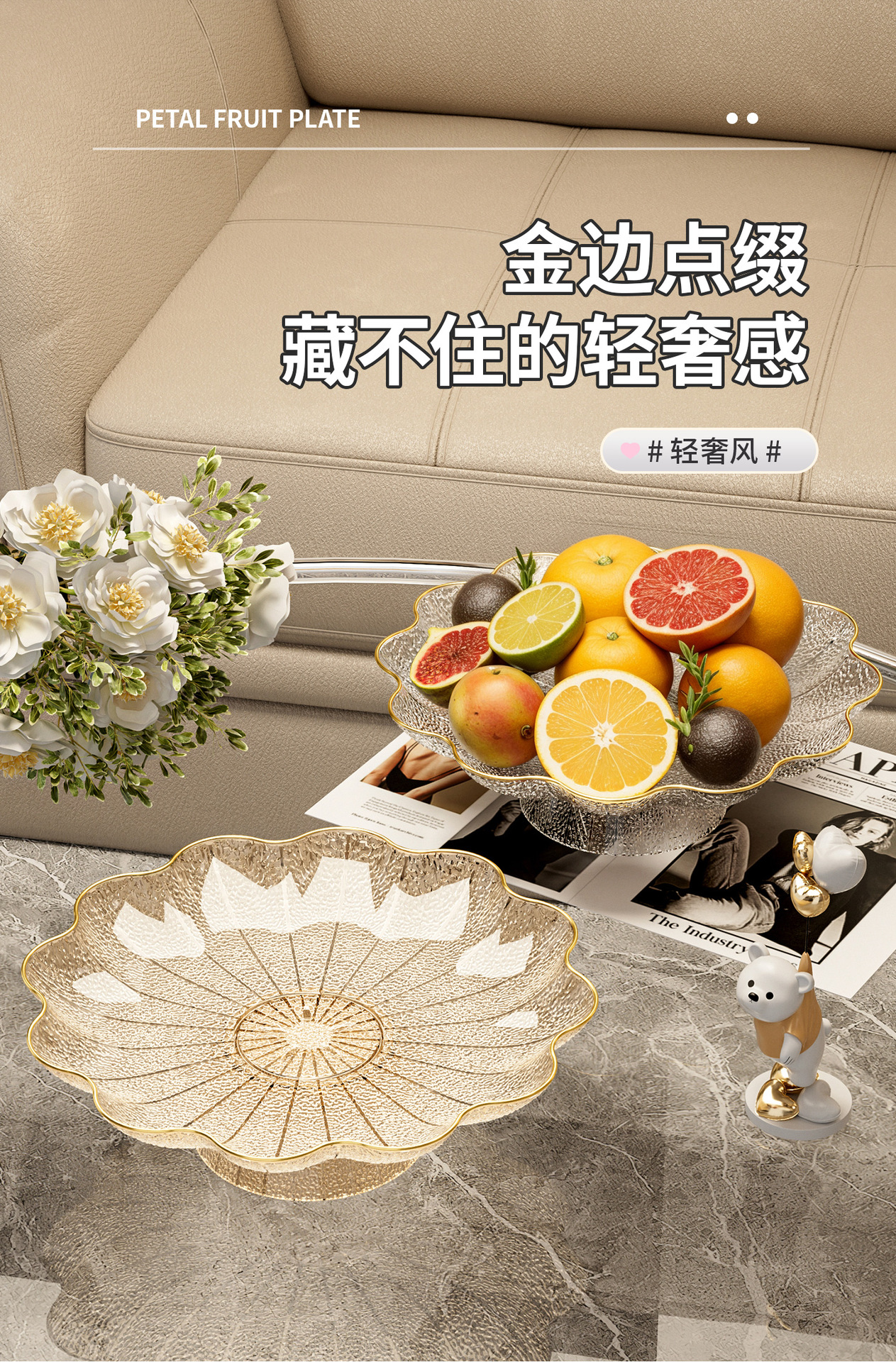 新款荷叶水果盘家用客厅茶几高脚沥水水果篮轻奢风零食糖果摆放盘