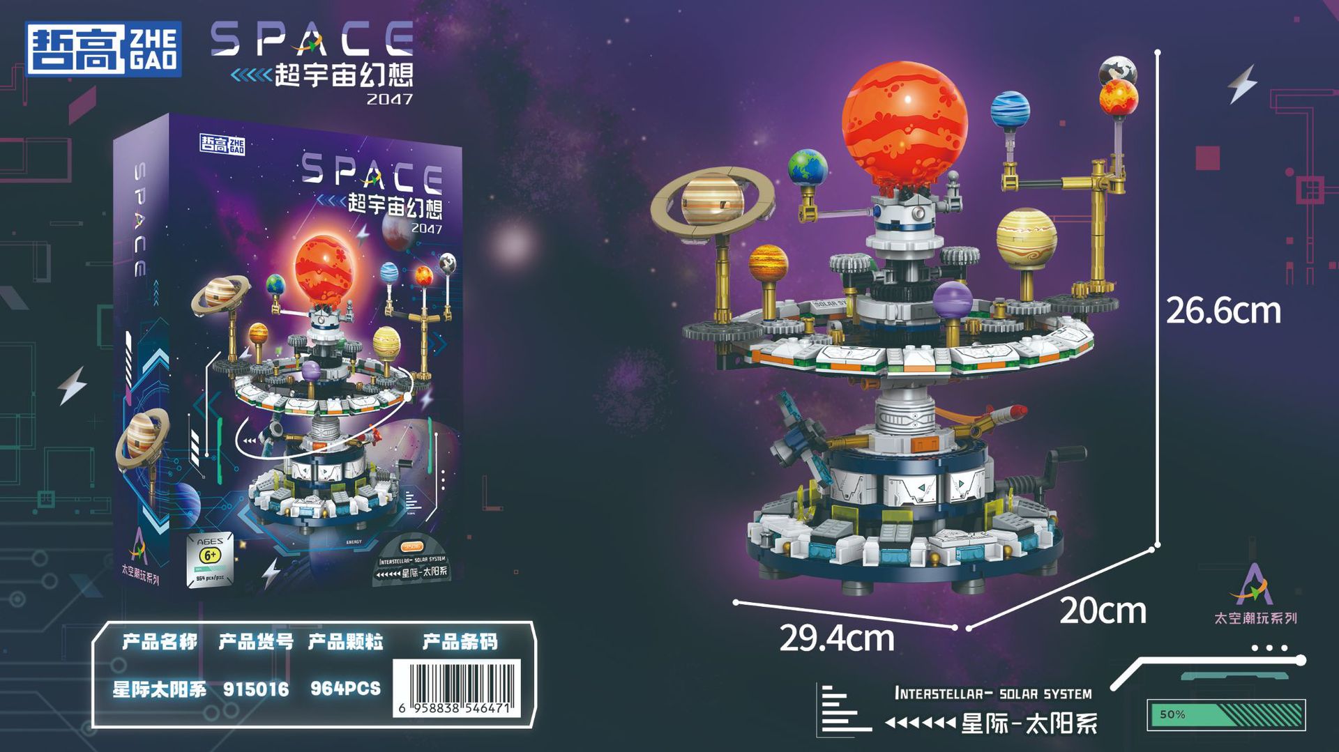 哲高915016星际太阳系九球仪摆件科教模型拼装积木男孩玩具礼物