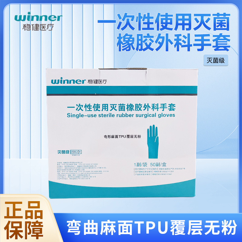 稳健一次性灭菌橡胶外科手套出口无粉纹绣实验室诊所牙科乳胶无菌