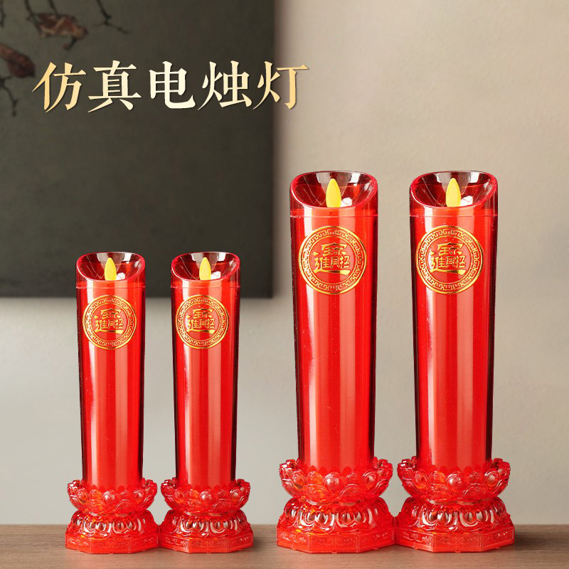 LED電気ろうそく灯財神招財灯家庭用電池礼仏長明灯香燭台に電気仏灯を挿して供養する