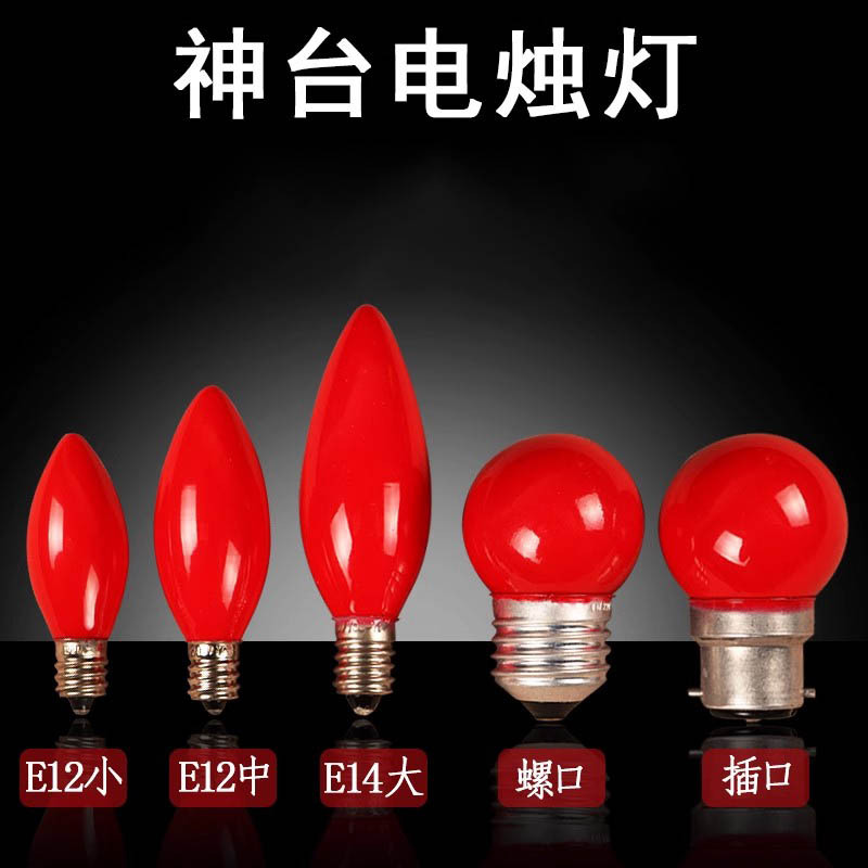 E14E12 LEDキャンドルランプ電球赤電気ろうそく尖形ナット口神台供卓電気香炉供仏部品