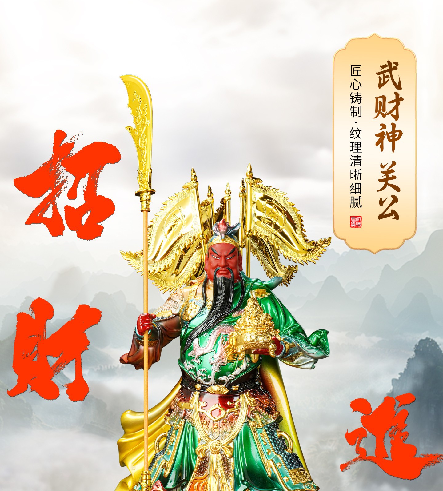 家庭用関羽置物、招福関羽像、関羽武財神、関二爷、財神像、供養神像、卸売