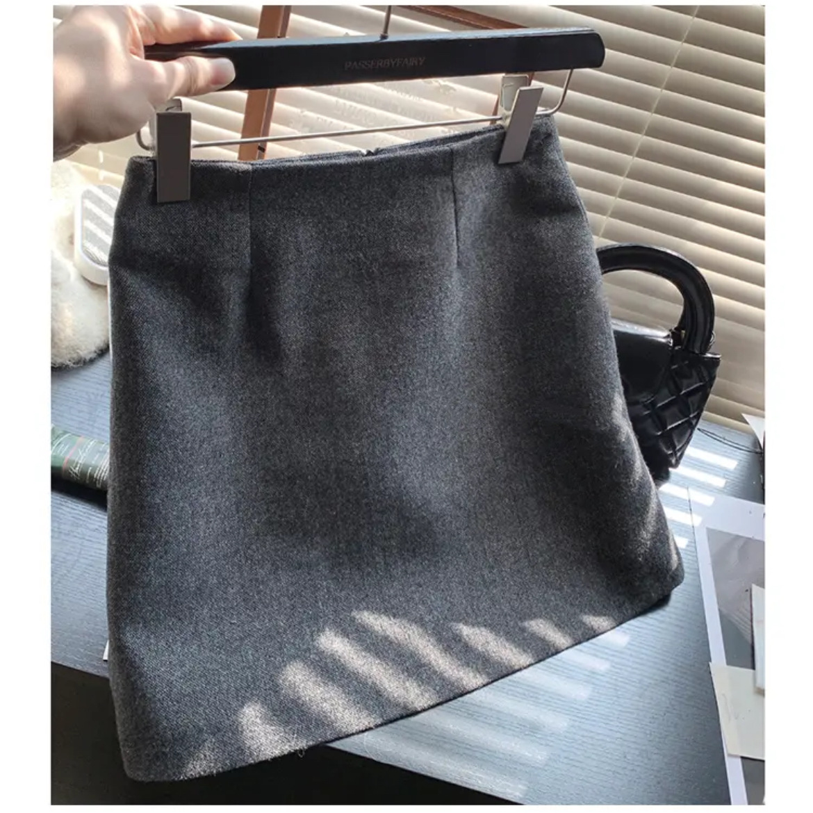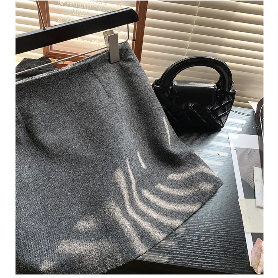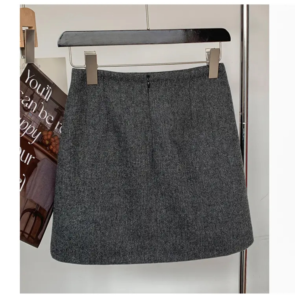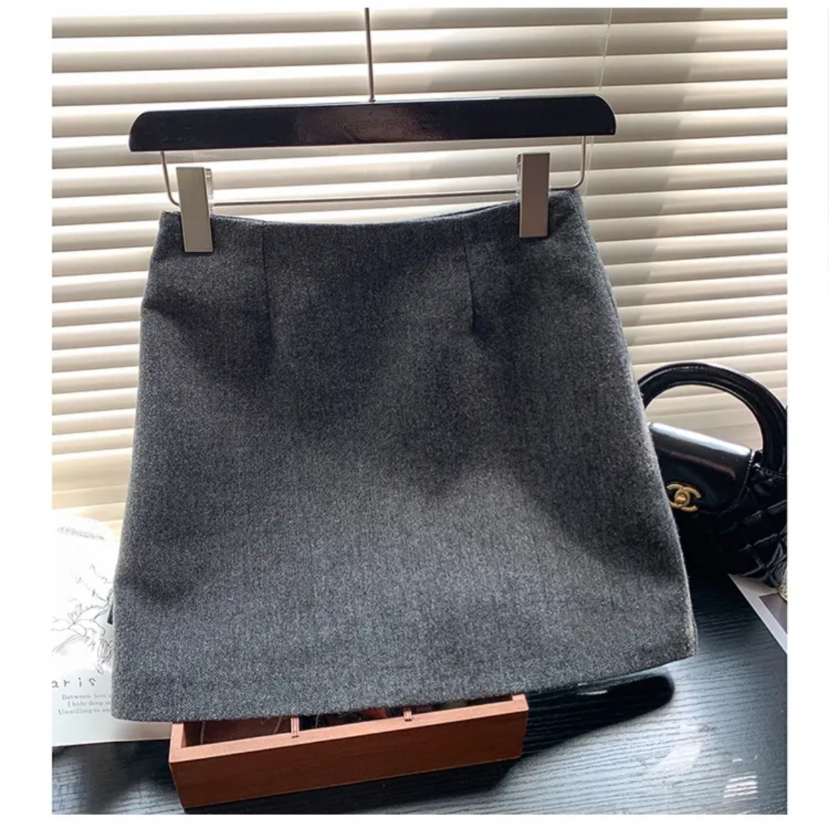 灰色毛呢半身裙女2025秋冬季外穿打底小个子a字包臀短裙修身显瘦