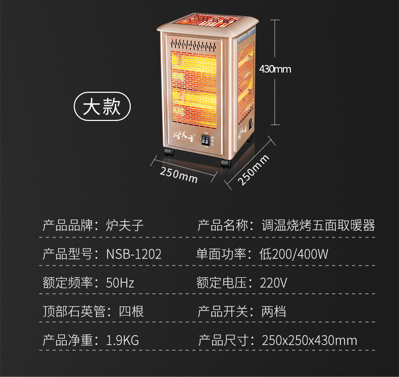 闪购直供 炉夫子五面取暖器家用小太阳电热扇暖脚神器烤火炉