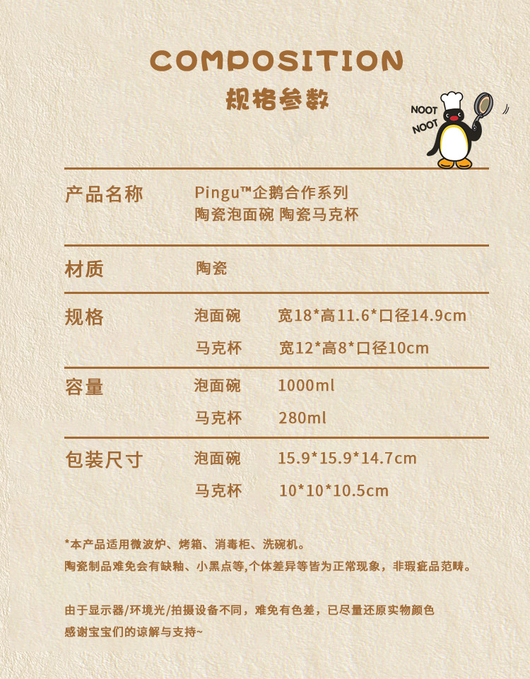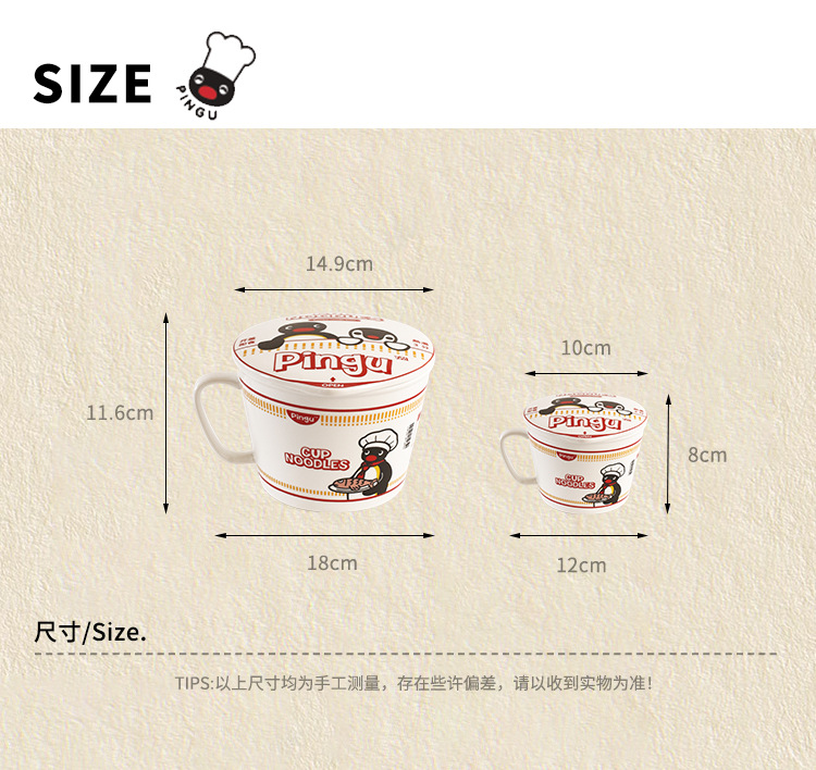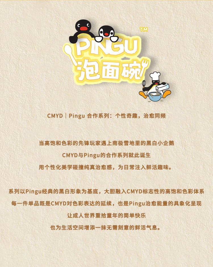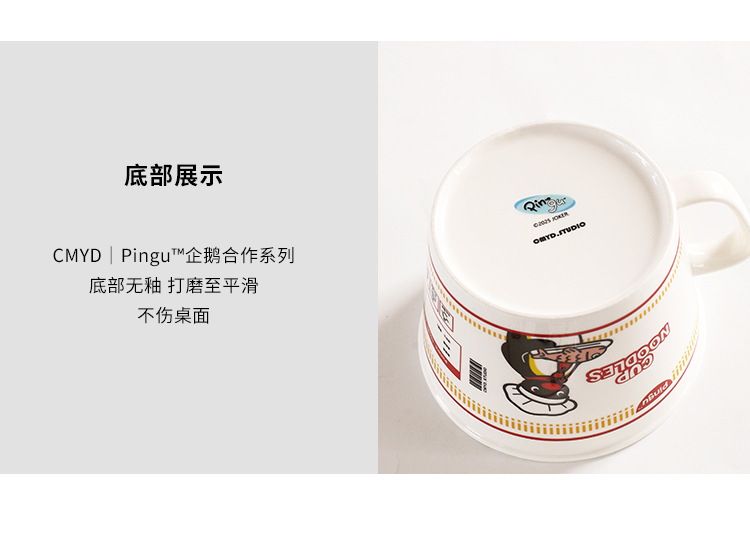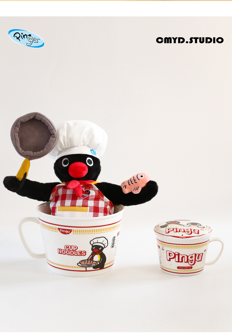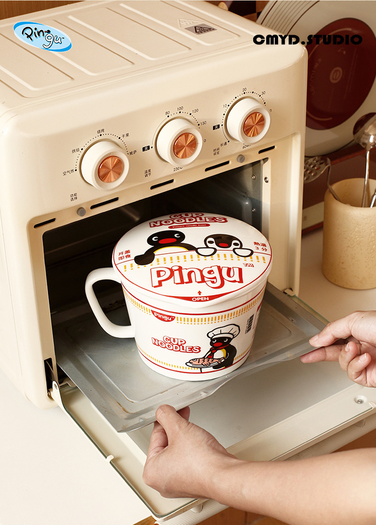 CMYD·Pingu合作系列企鹅泡面碗陶瓷带盖马克杯学生礼物餐具套装