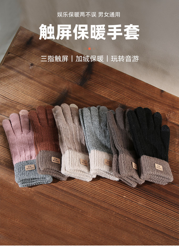 男士手套冬季加厚保暖触屏加绒毛线冬天防寒骑行秋冬针织5新