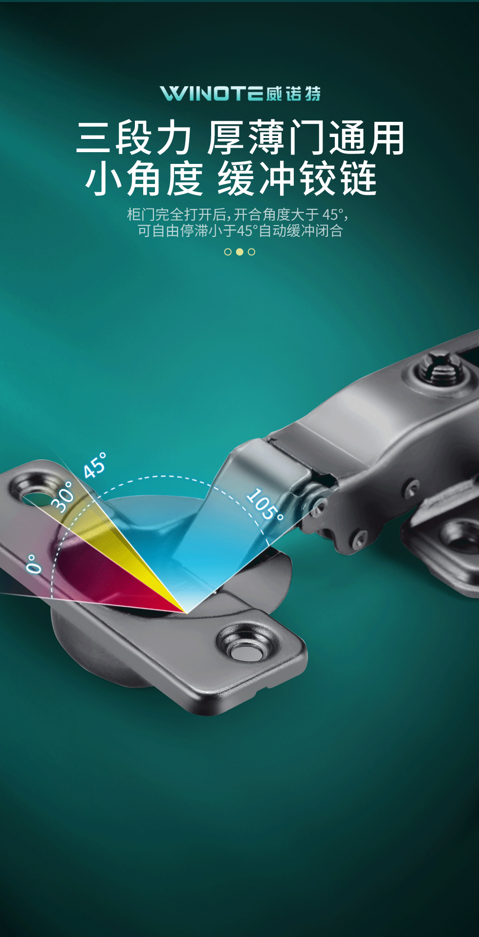 三段力ゼロダンピング角度ヒンジ、厚薄ドア兼用、静音緩衝隠し式家具金物