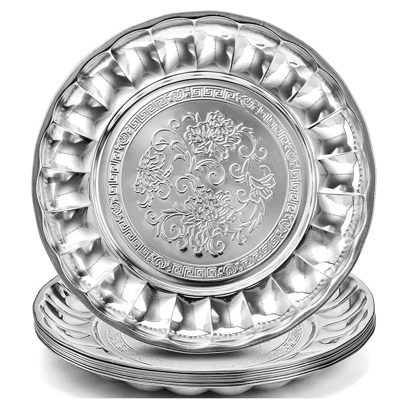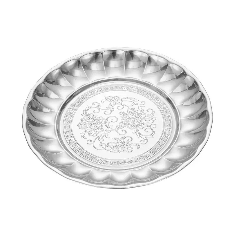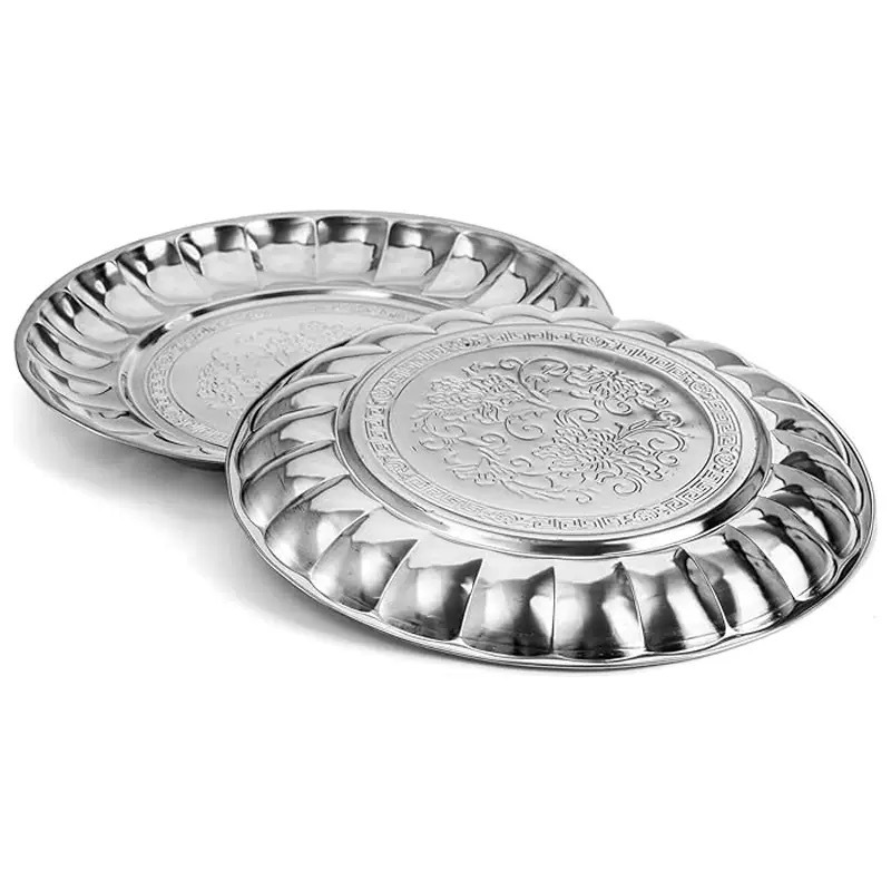 国境を越えたステンレス鋼の丸い富のトレイ、フルーツトレイ、多目的トレイ、店舗供給、日用品卸売、厚みのある