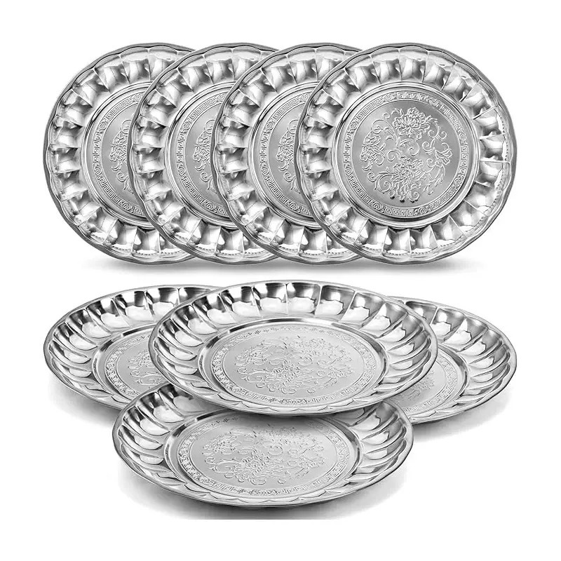 ステンレス鋼ディスク 410 ディスク厚く深めのディスク食堂レストラン家庭用ディッシュプレートフルーツプレートバーベキュープレートトレイ