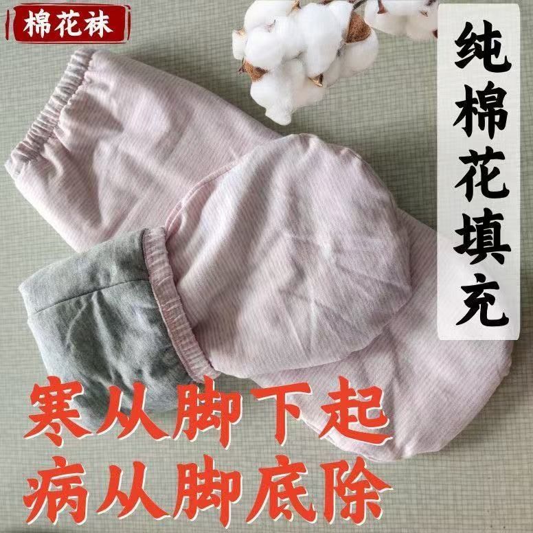 纯棉花内胆袜子男女睡眠棉花袜套中老年加厚保暖孕期月子袜
