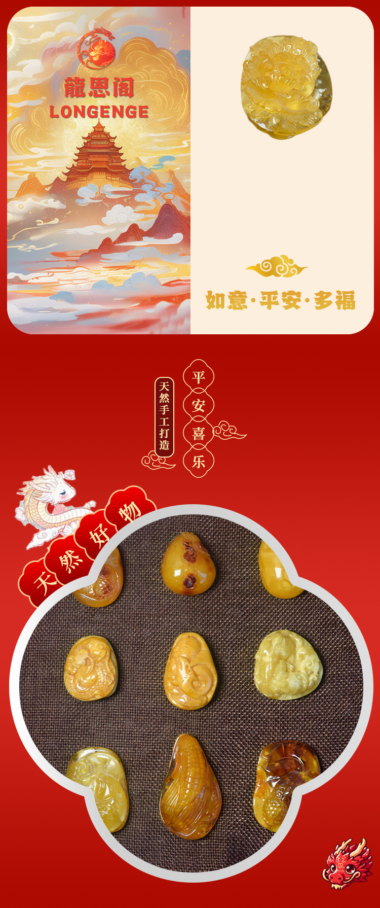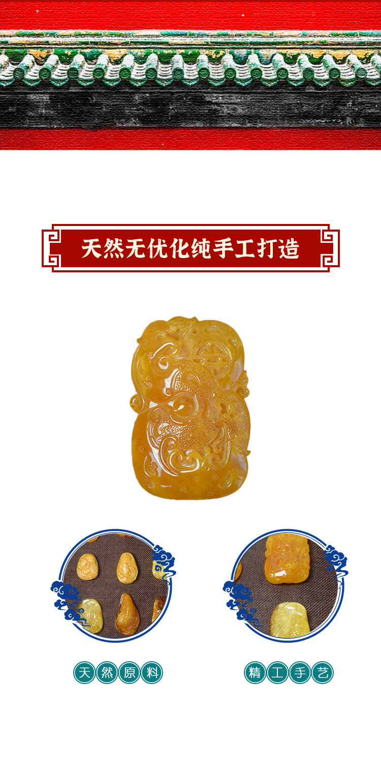 商品名称 天然真货波罗的海原矿直切琥珀蜜蜡鸡油黄雕刻件吊坠项链挂坠配饰
