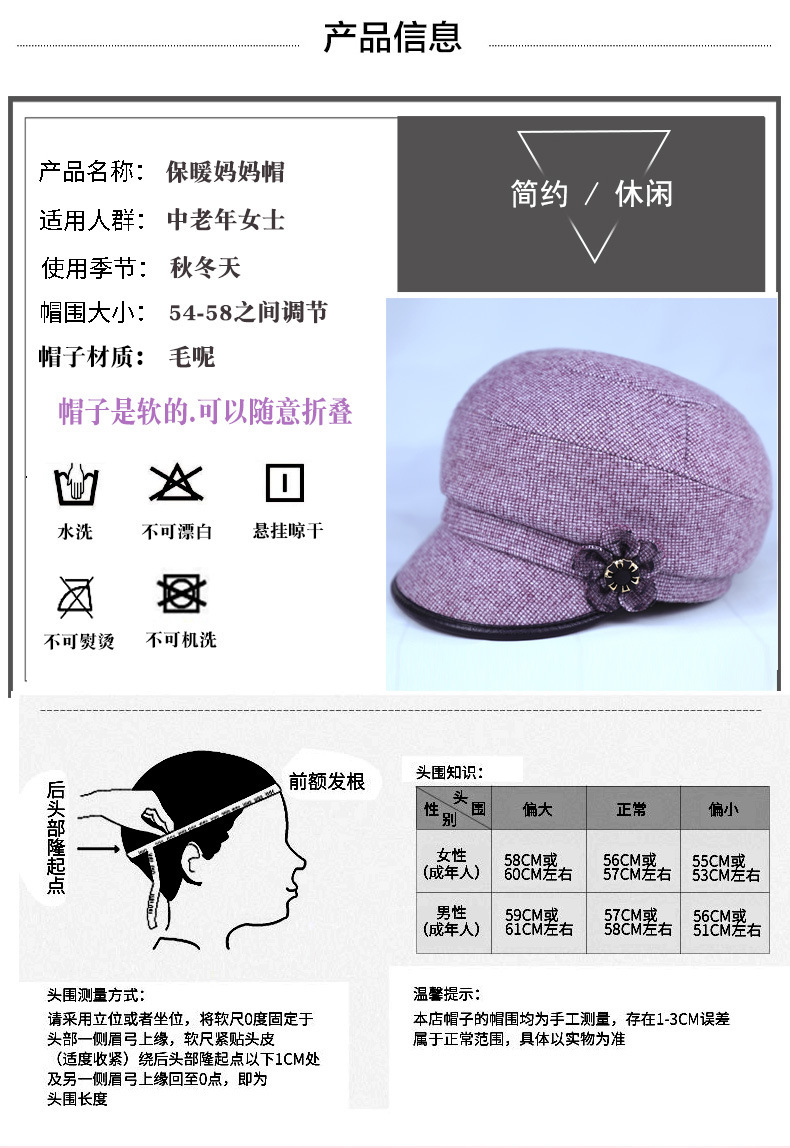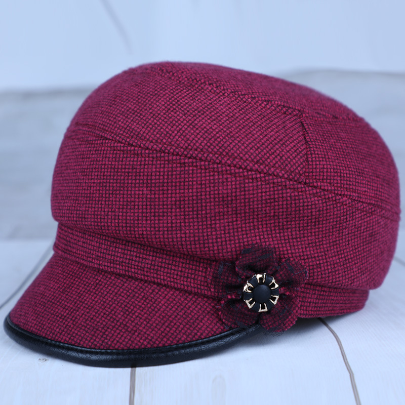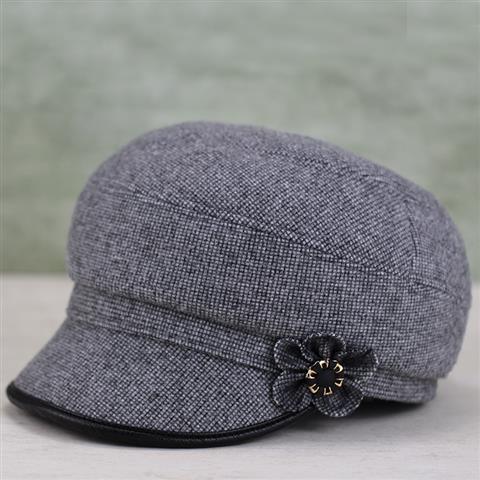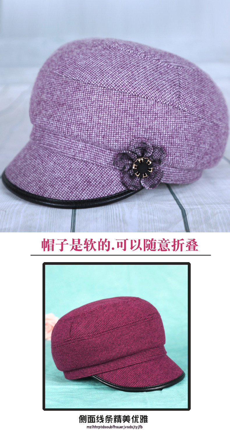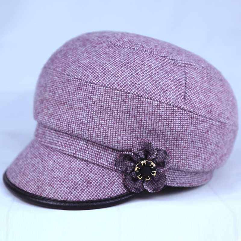 2022秋冬季女帽呢子妈妈帽奶奶鸭舌帽老年人帽加棉加棉八角冬帽子