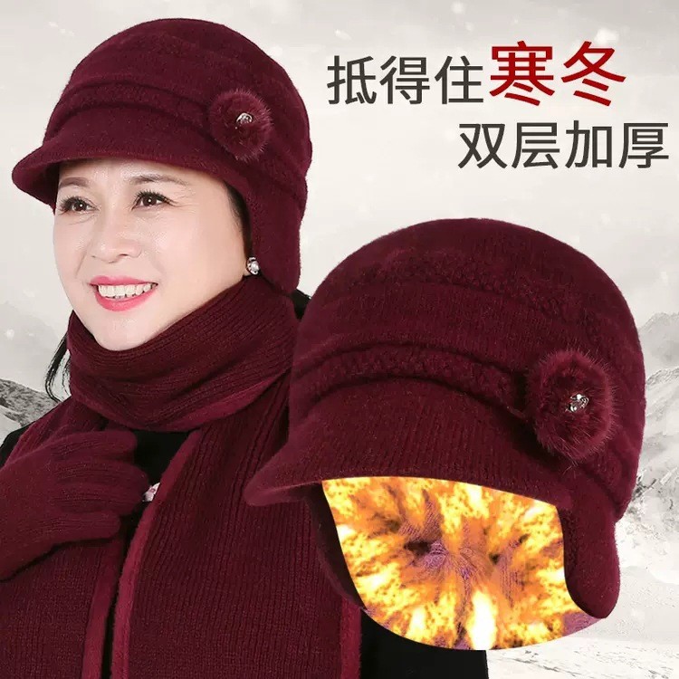中高年の帽子の女性の冬の保温の耳の帽子のおばあさんのお母さんの毛糸の帽子の防寒のおばあさんのニットの帽子