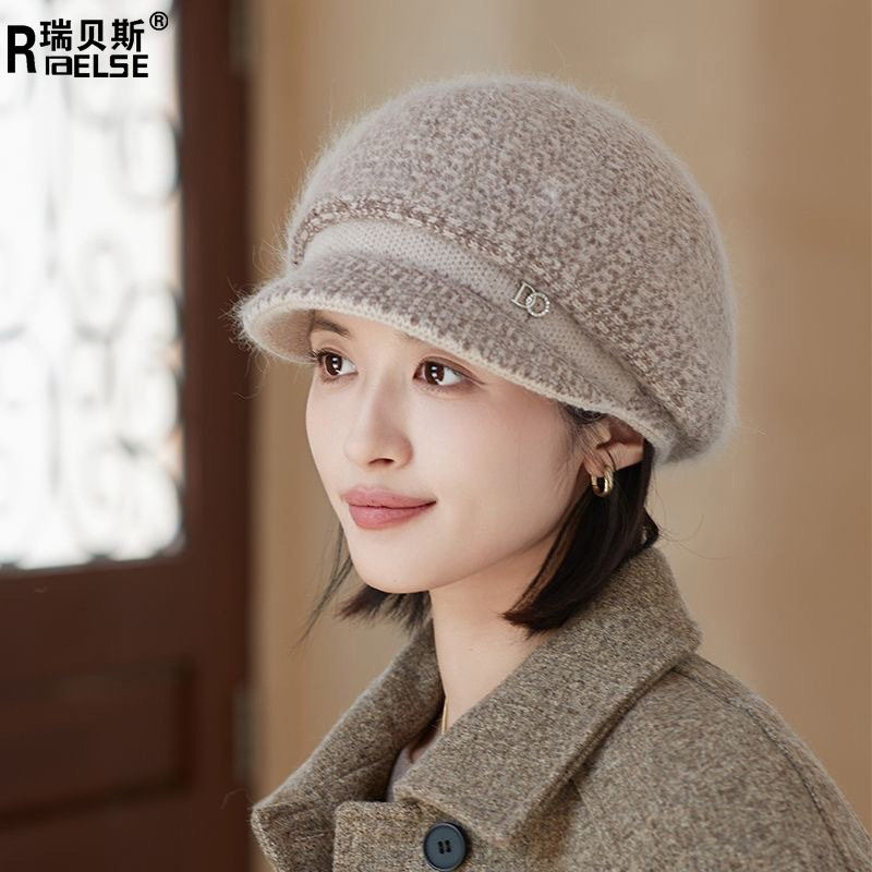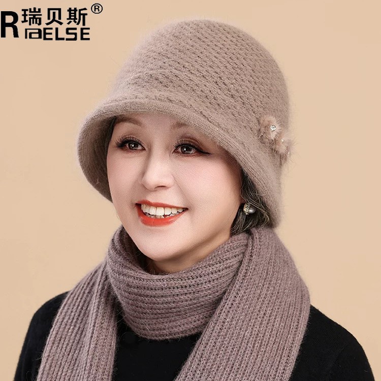秋冬季中老年女士妈妈兔毛针织毛线帽加绒保暖奶奶老太太洋气盆帽