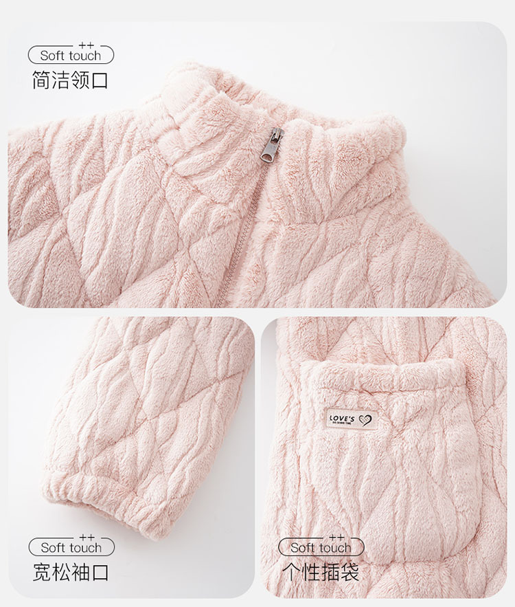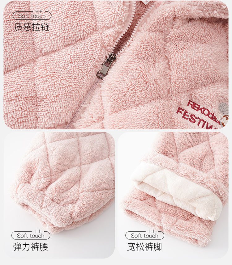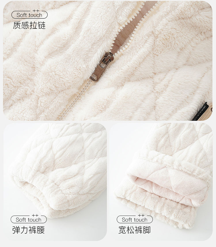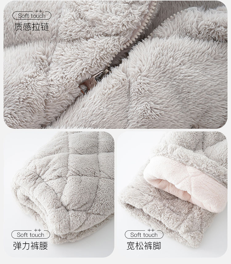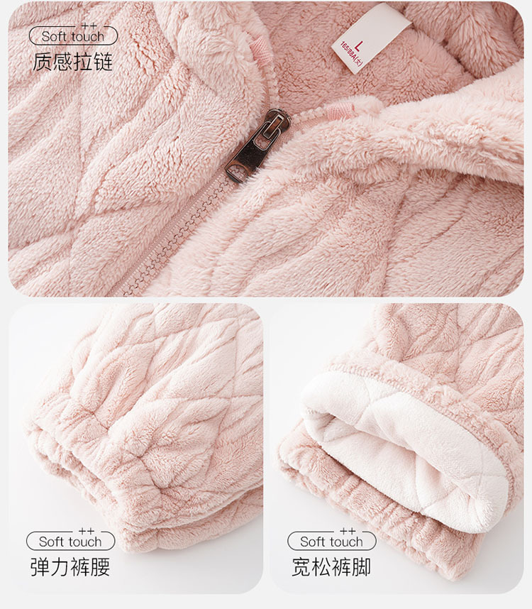 超厚いパジャマの女性は冬に厚いタイプの保温三階のサンゴの毛を加えて綿入れの上着を挟んでフランネルの家庭服のスーツに出かけます。