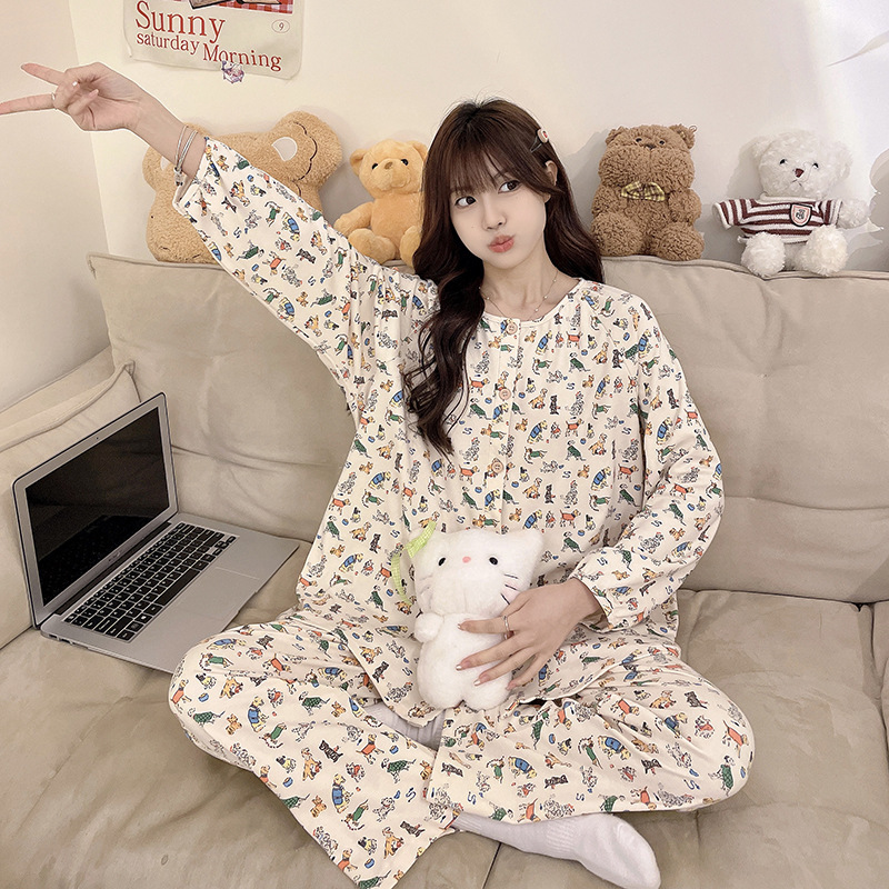 長袖パジャマ女性春秋純綿2023年新作レディース漫画カジュアルカーディガン秋冬ホームウェアセット