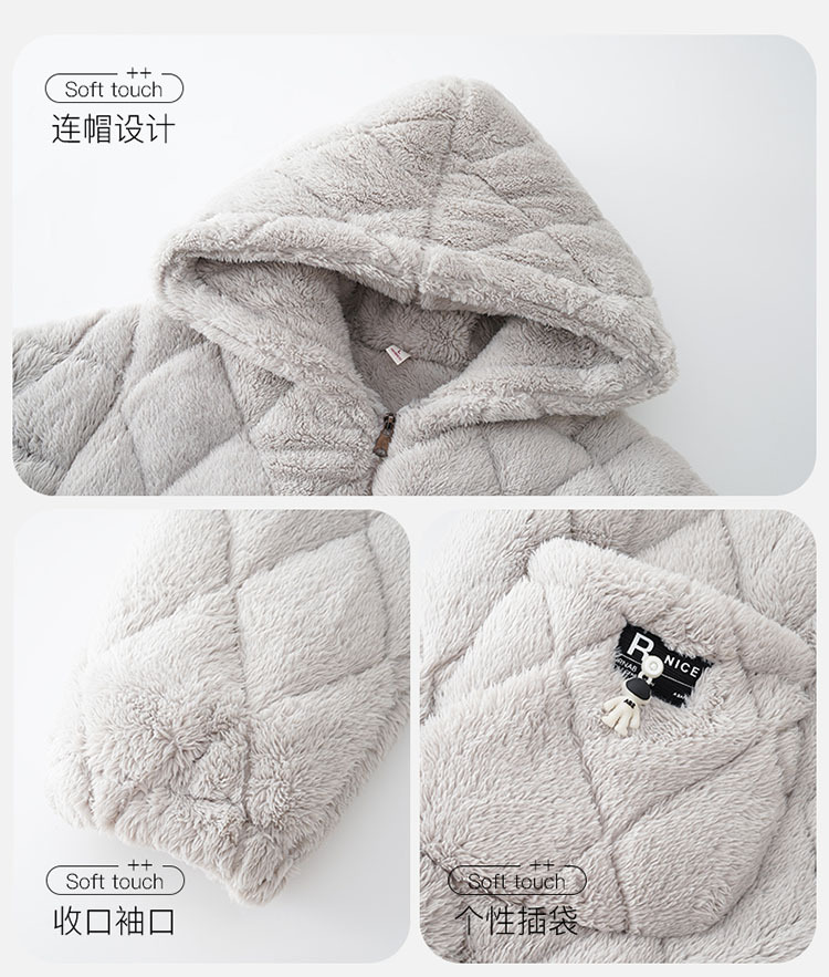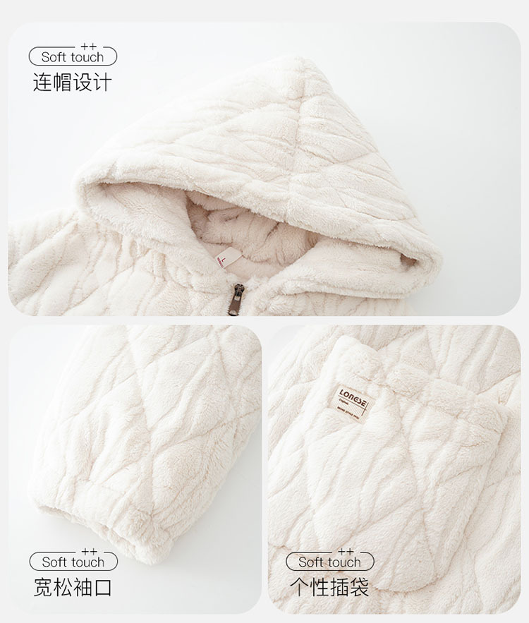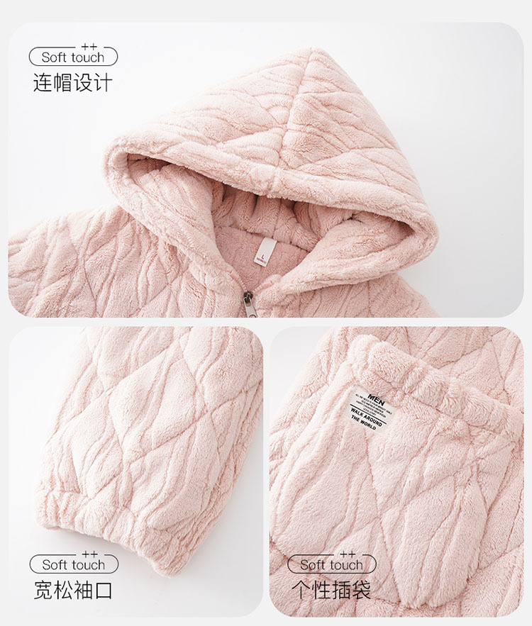 三层夹棉情侣睡衣冬季新款简约休闲加厚加绒连帽拉链外套可外穿男