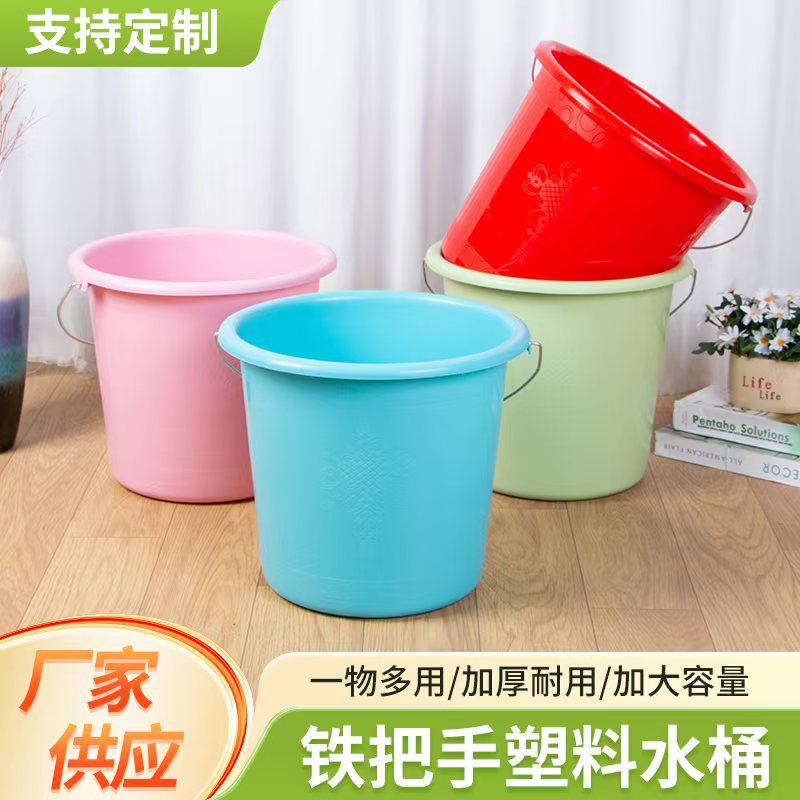 厂家铁把塑料桶彩色无盖清洁桶大容量打扫卫生桶圆形钓鱼桶储水桶