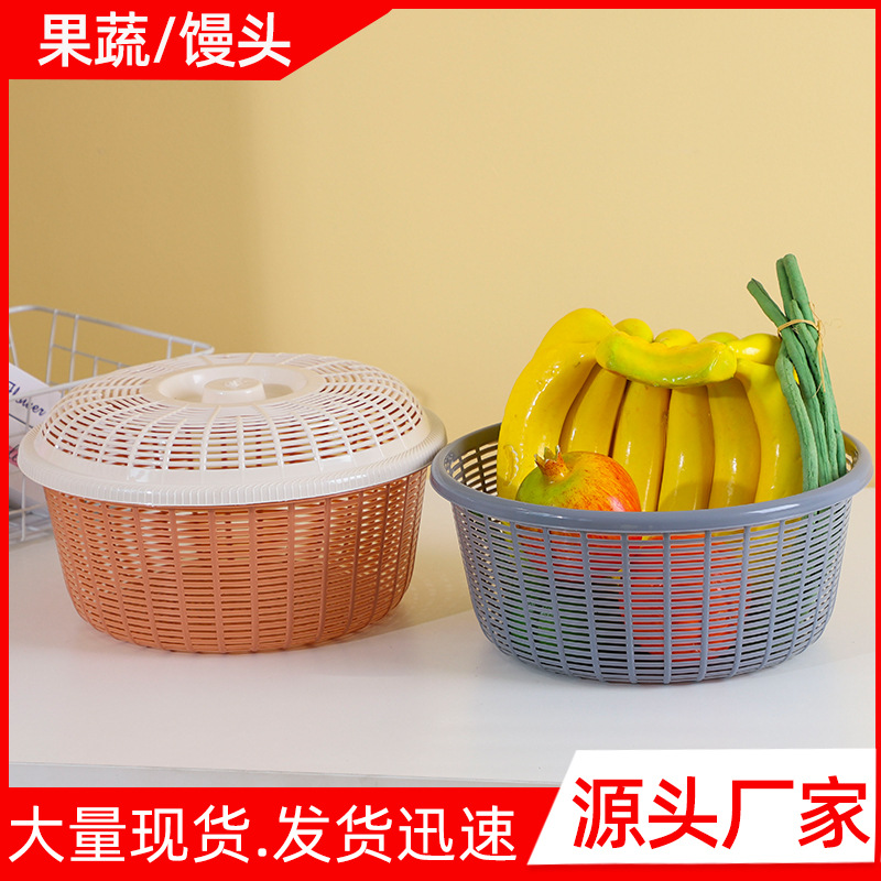 家庭用卸売り蓋付きマントーバスケット台所野菜バスケット収納水たまりバスケット家庭用プラスチック収納ビジネスプレゼント