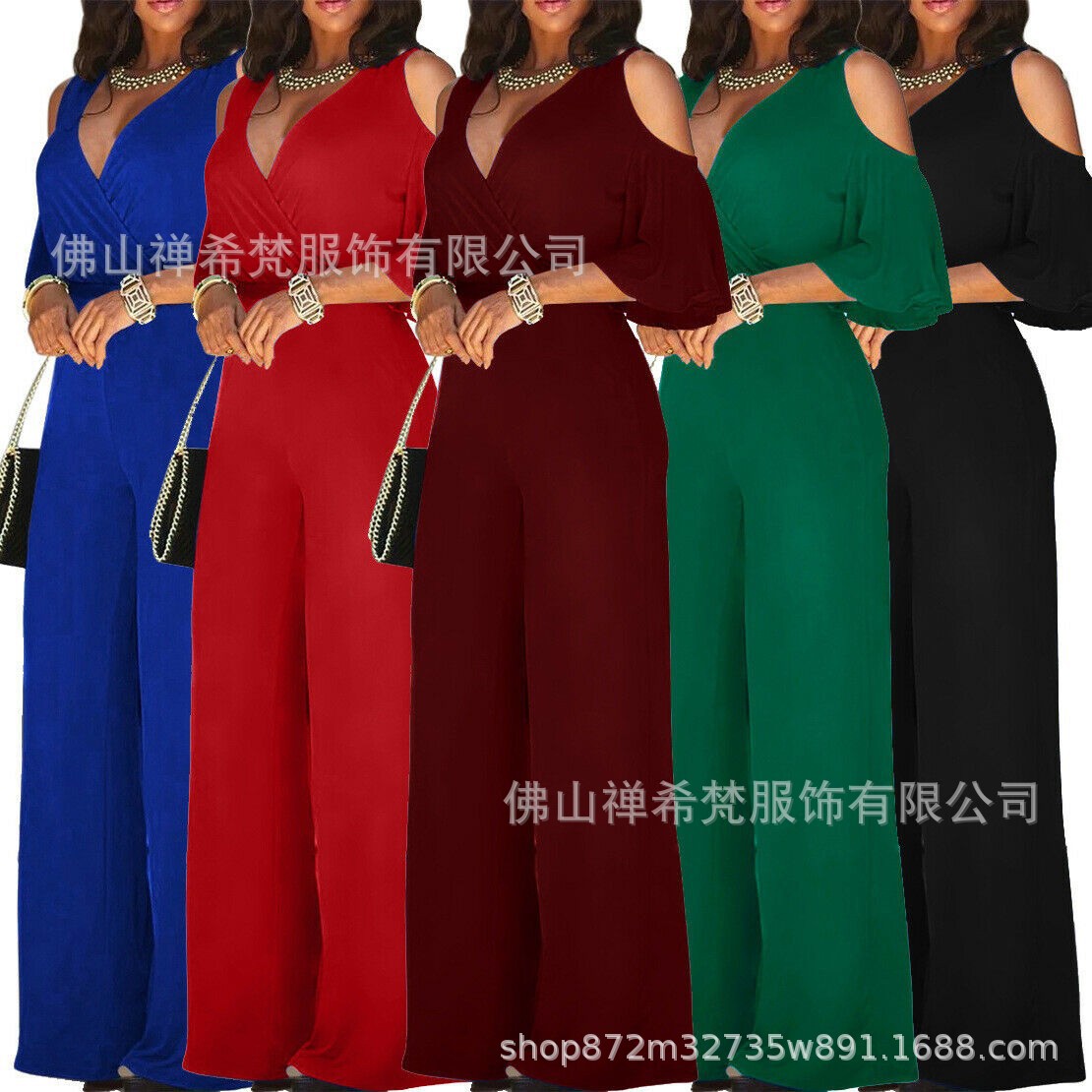 Amazonヨーロッパとアメリカの貿易新しい女性のウエストショートディープVネックジャンプスーツノースリーブ気質カジュアルジャンプスーツ
