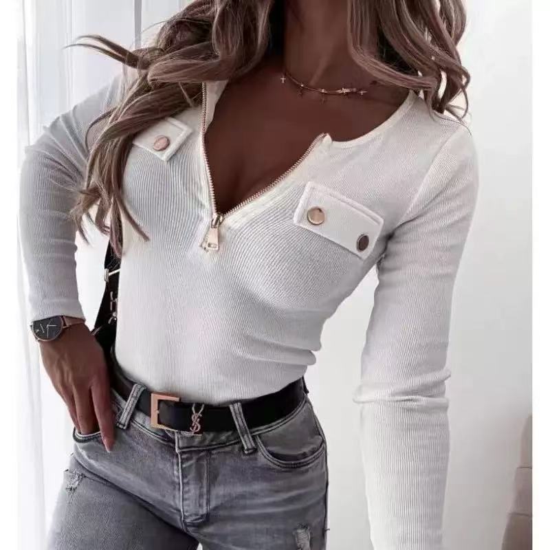 2026年秋の新作、ヨーロッパとアメリカの越境EC eBay向けファッションニットスリムフィット長袖プルオーバージッパー付きトップスTシャツ