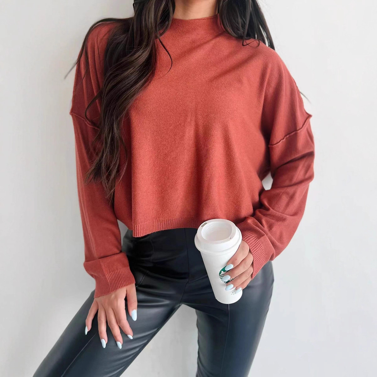 2024秋冬アマゾンTEMU欧米の国境を越えた外国貿易婦人服のゆったりとしたカジュアルな純色の帽子の長いバージョンの女性