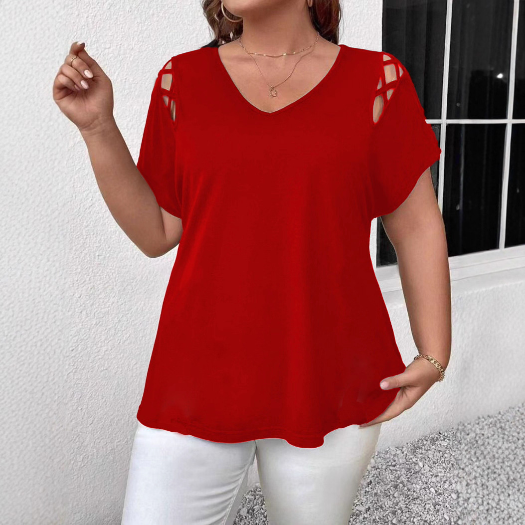 大きいサイズ 2025 新作 Amazon ヨーロッパとアメリカのクロスボーダーレディース夏ヨーロッパとアメリカのセクシーな V ネッククロスストラップ半袖 T シャツ