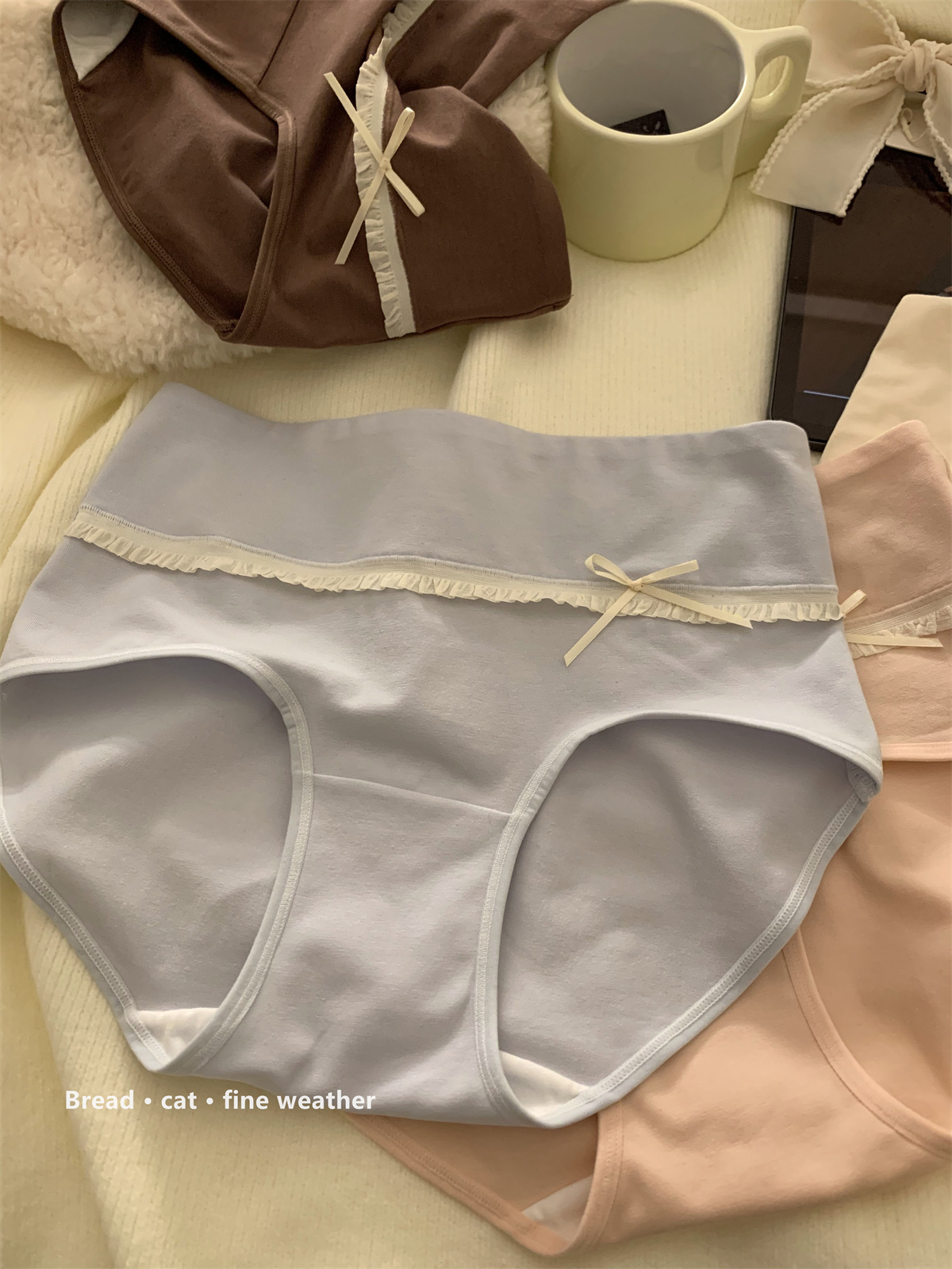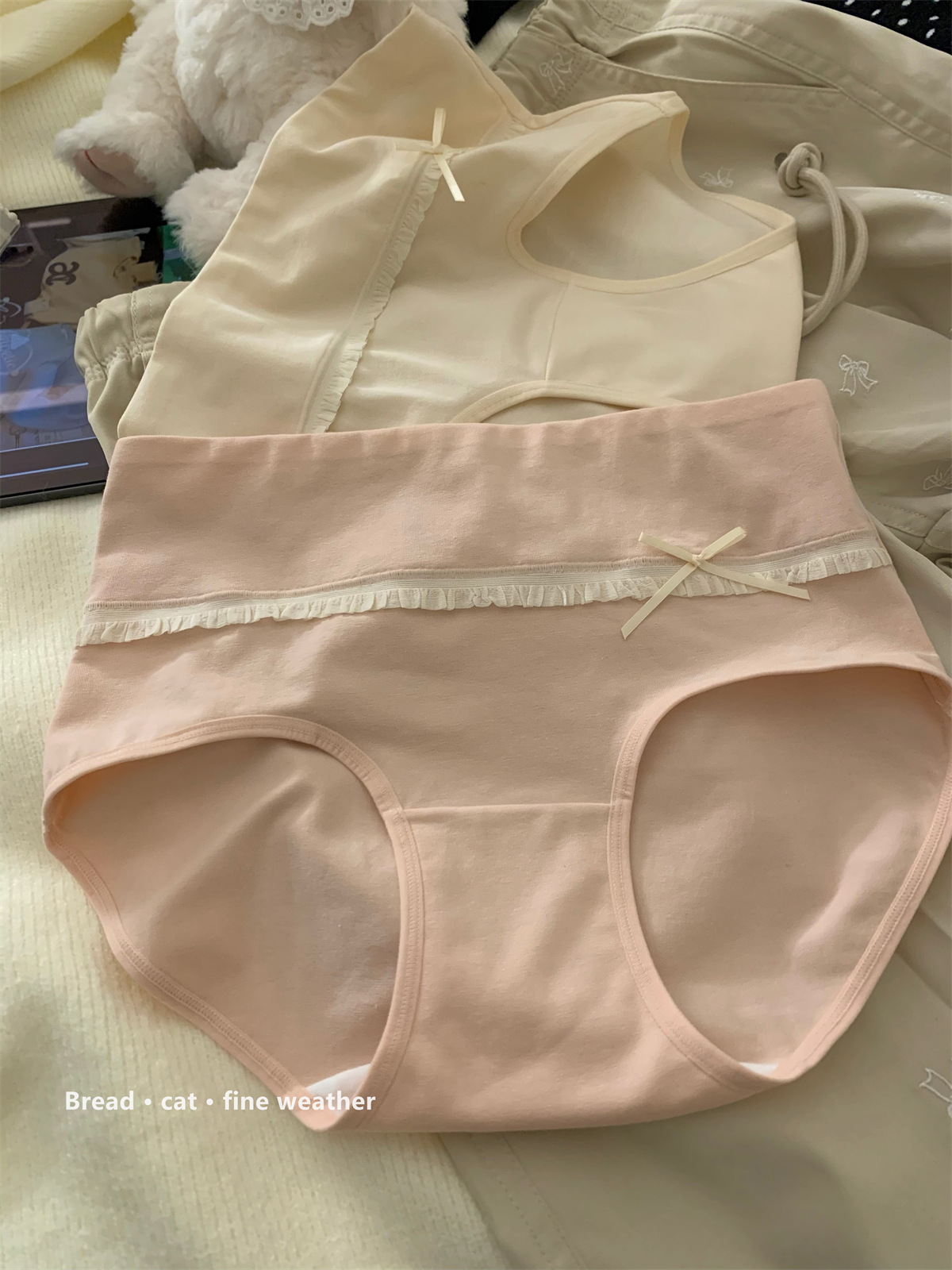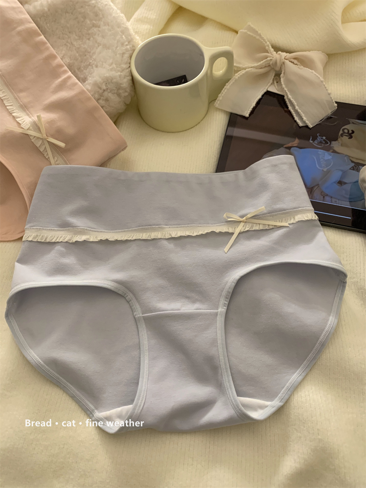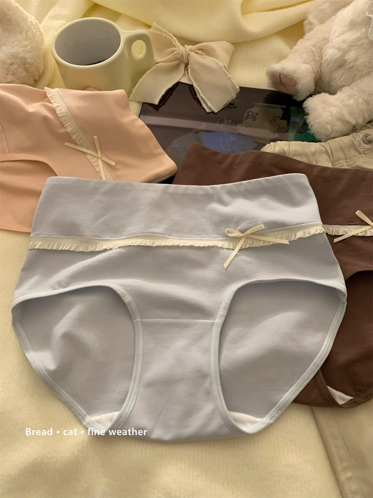 “满眼月光芭蕾”10A抗菌纯棉高腰内裤女生甜美花边蝴蝶结加长裆