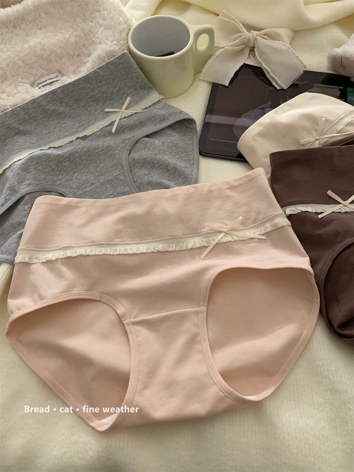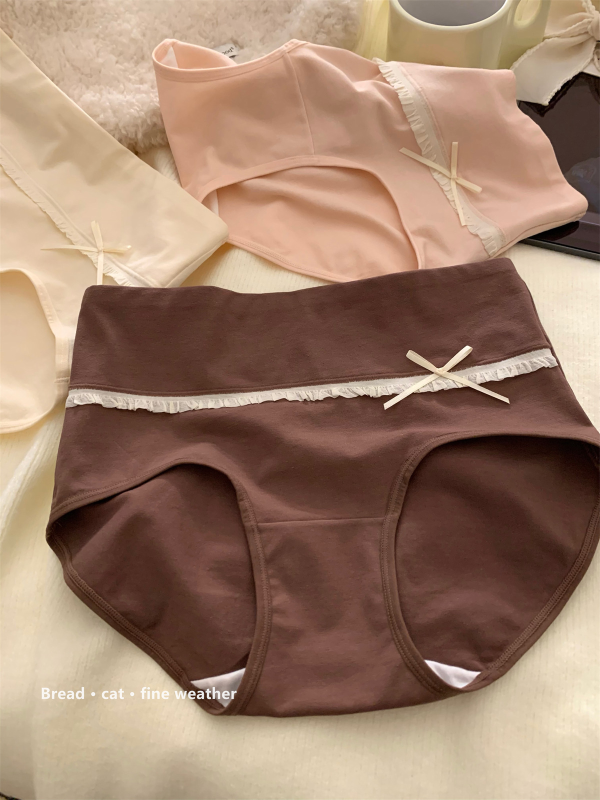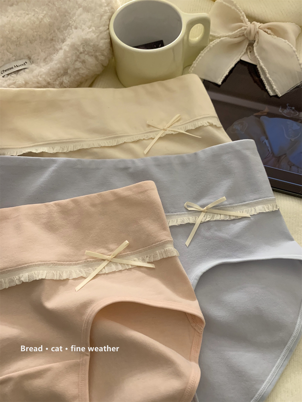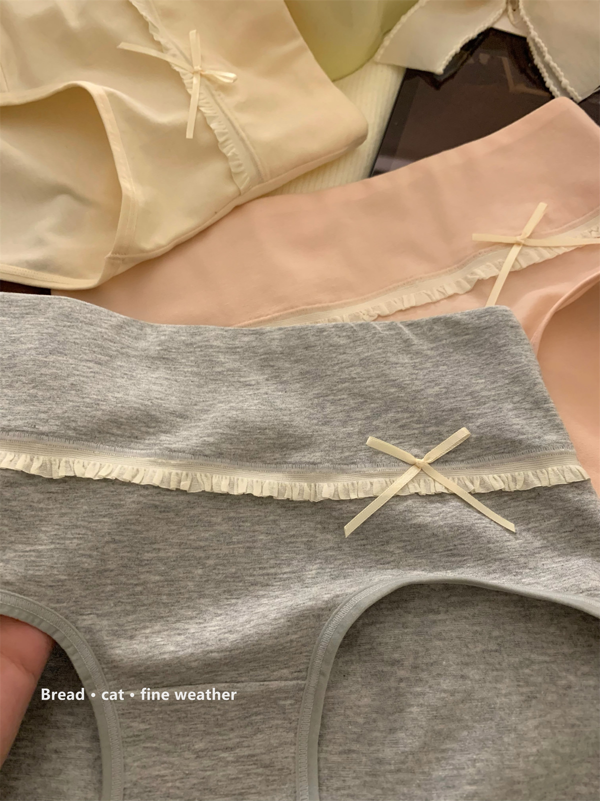 “满眼月光芭蕾”10A抗菌纯棉高腰内裤女生甜美花边蝴蝶结加长裆