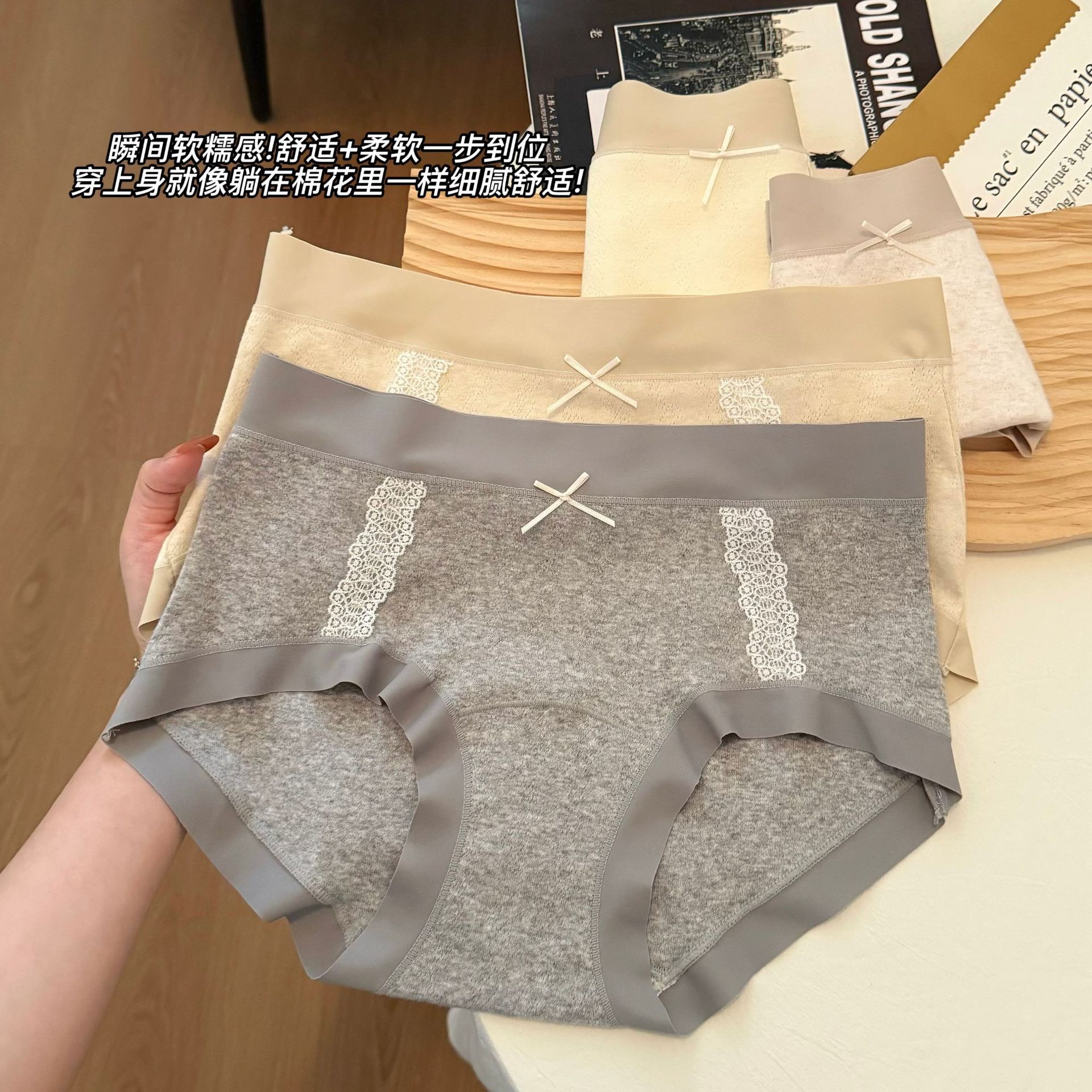 花蕾纱雾·魅惑蕾丝花边纯棉内裤女生10A抗菌舒适纯棉提花三角裤