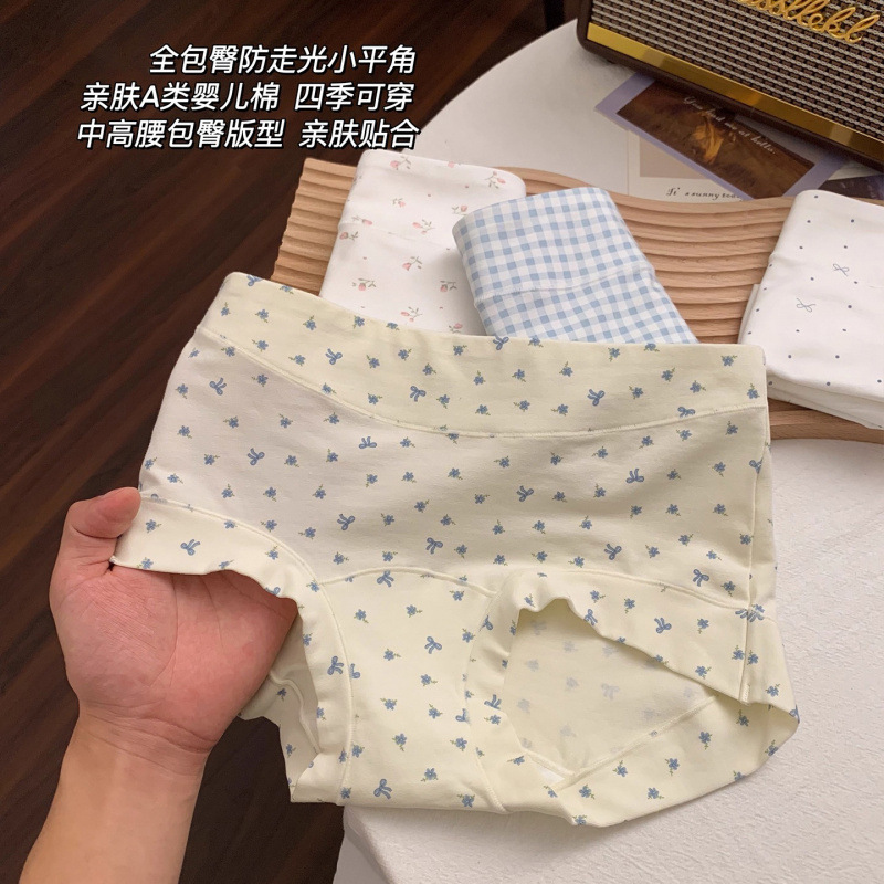 10A抗菌纯棉小平角内裤女生贴合加长裆提花透气A类婴儿棉四角底裤