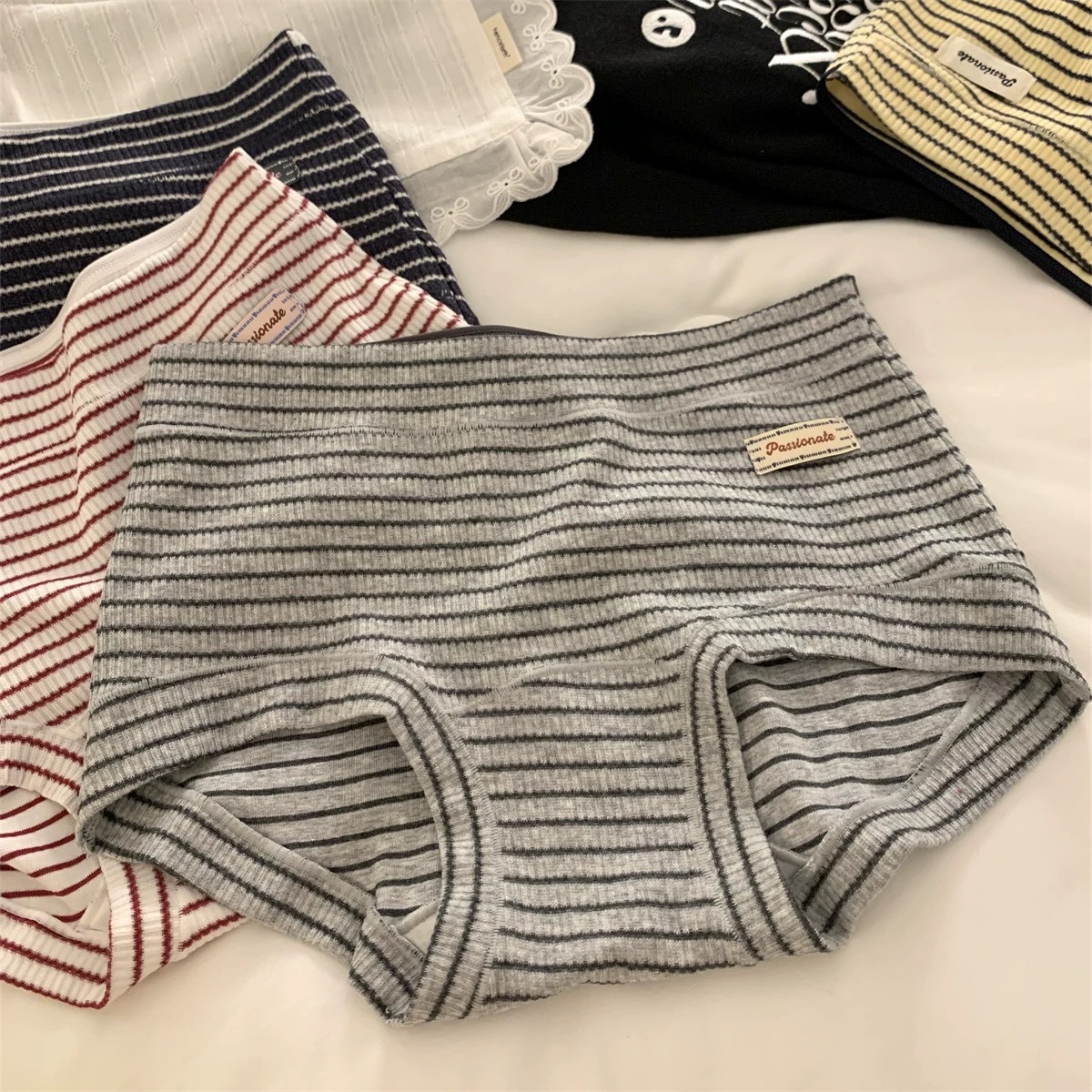 美式条纹纯棉小平角女生10A抗菌运动复古风A类纯棉加长裆四角底裤