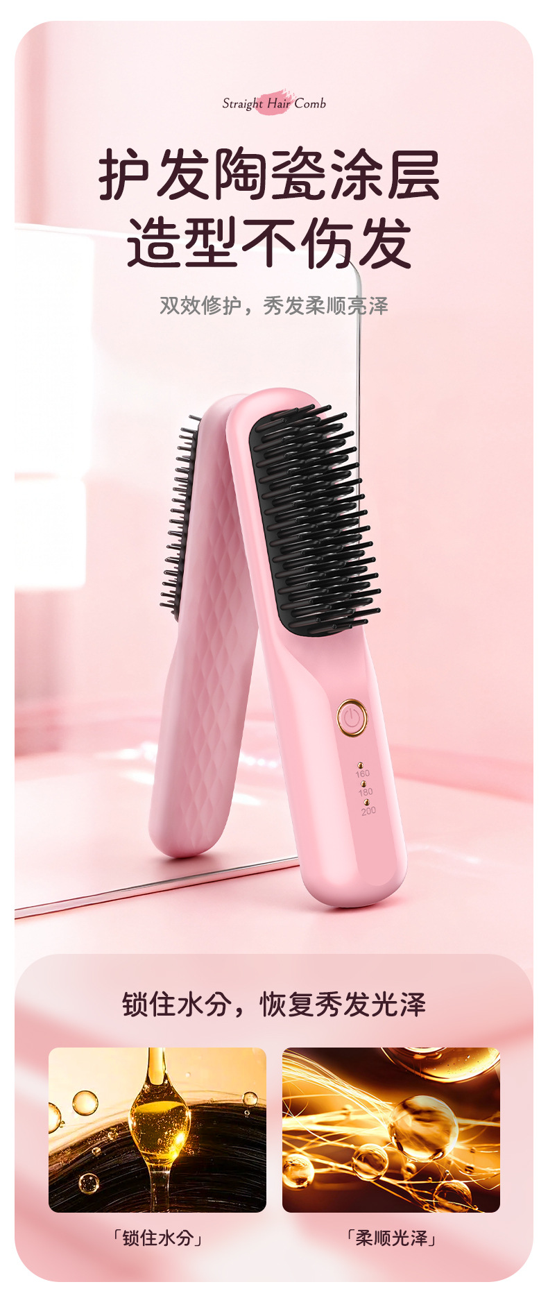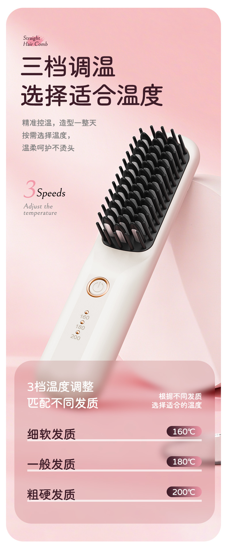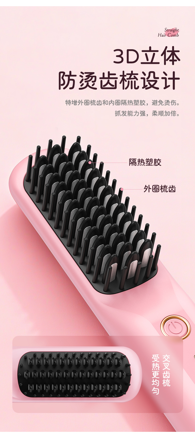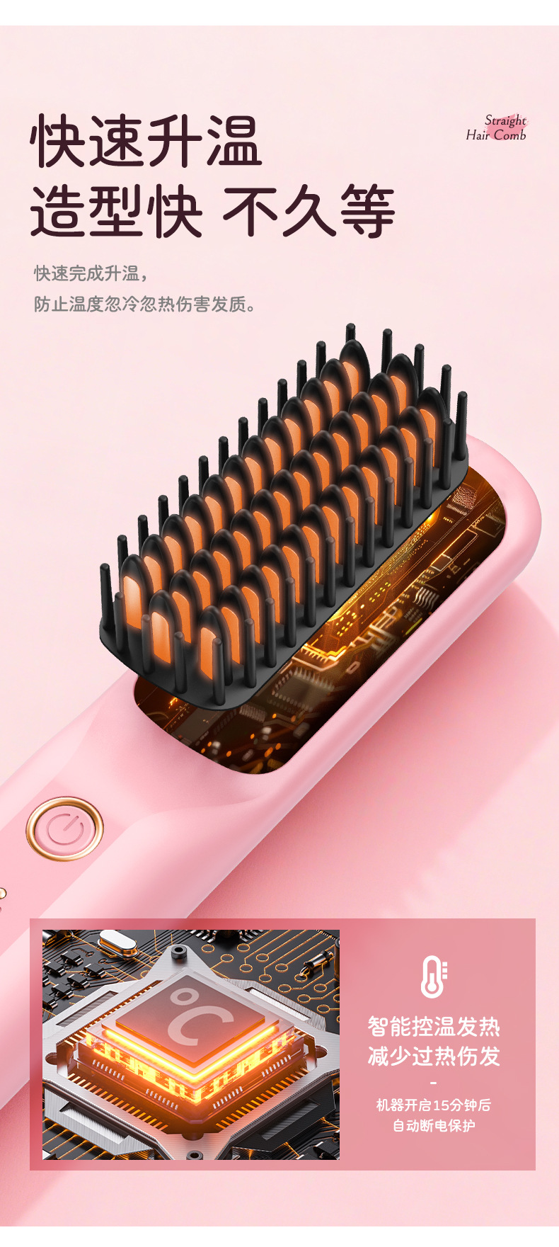 无线直发梳卷发棒可调温陶瓷加热不伤发高颅顶造型便捷式电热梳