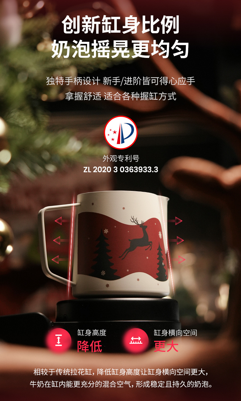 ✅轰炸机拉花缸圣诞礼物限定版咖啡拉花杯600ml原创手